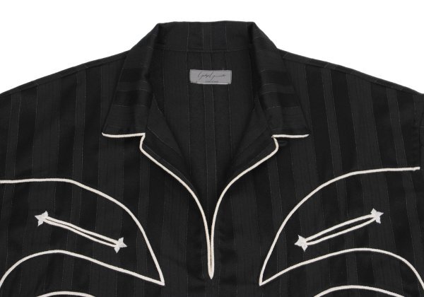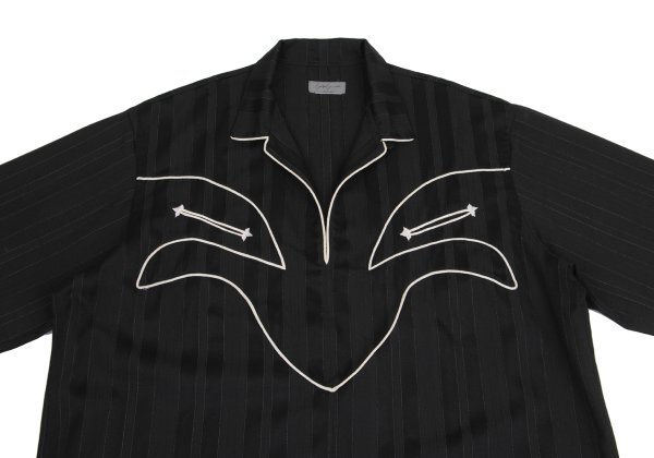 | ヨウジヤマモト プールオムYohji Yamamoto POUR HOMME ストライプジャガードウエスタンテーピングプルオーバーシャツ 黒L位 |