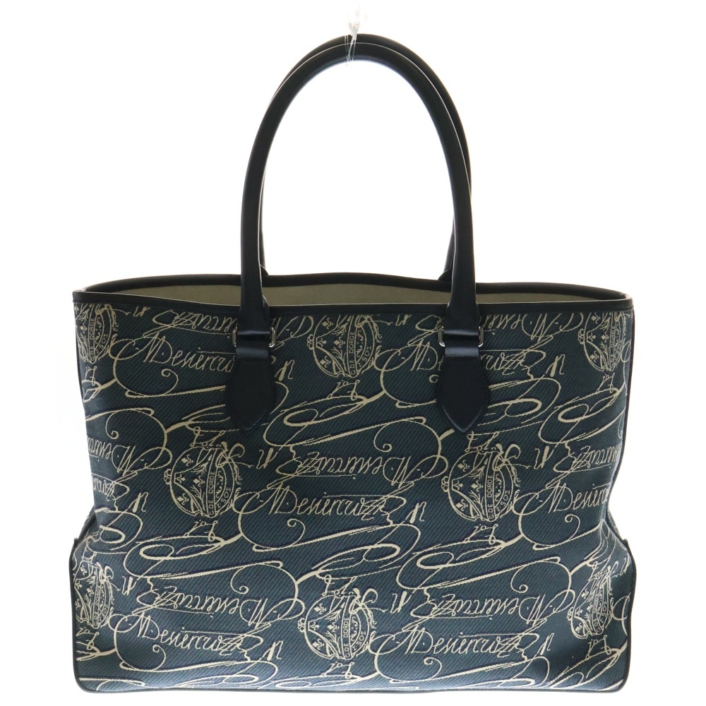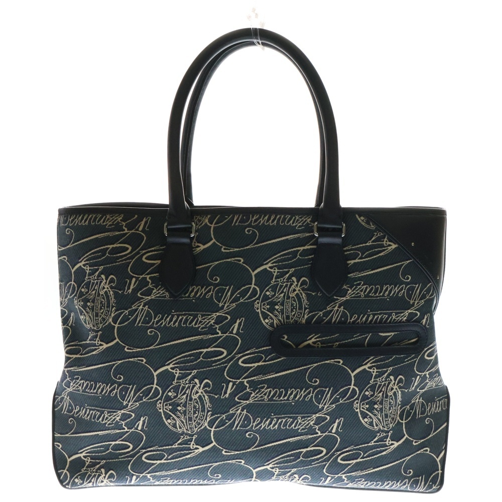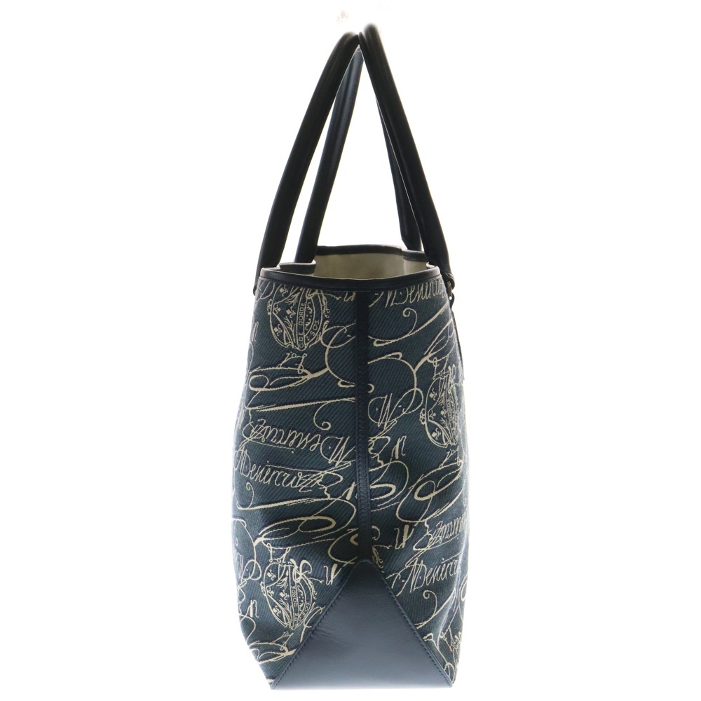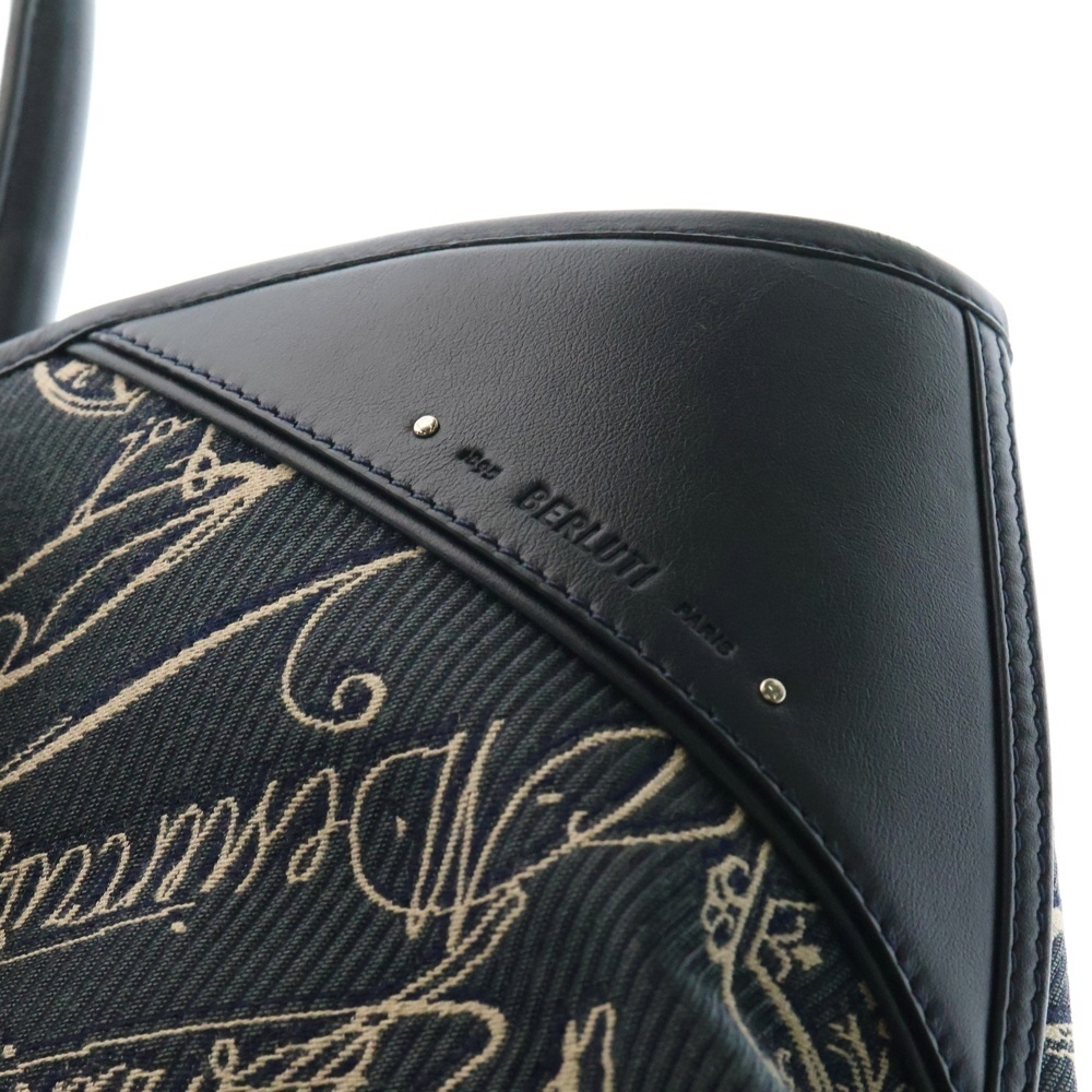 Berluti ベルルッティ トゥジュール スクリット レザー切替ジャガードデニムトートバッグ ネイビー