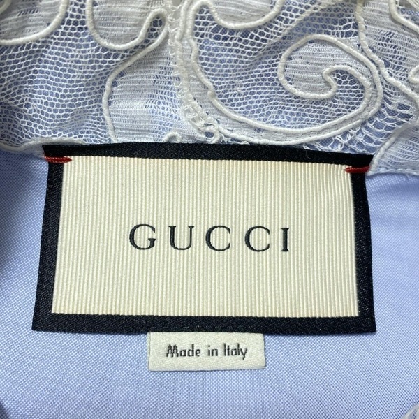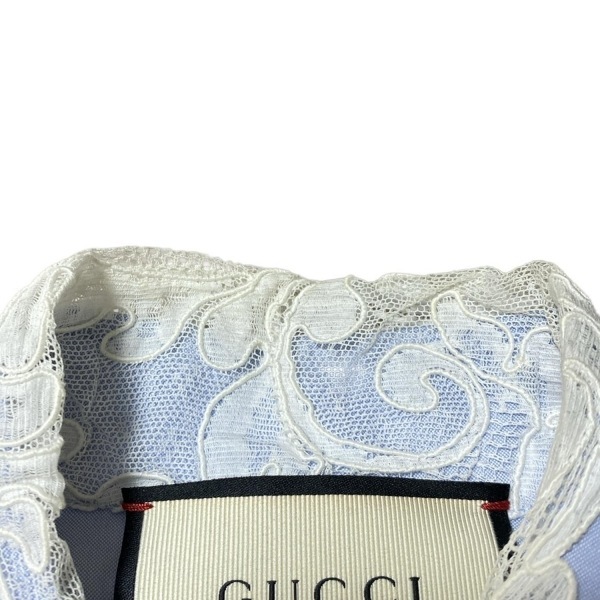 グッチ GUCCI 長袖シャツブラウス サイズ38 S 449736 ZIK20 - ライトブルー×アイボリー レディース レース/リボンブローチ付き トップス