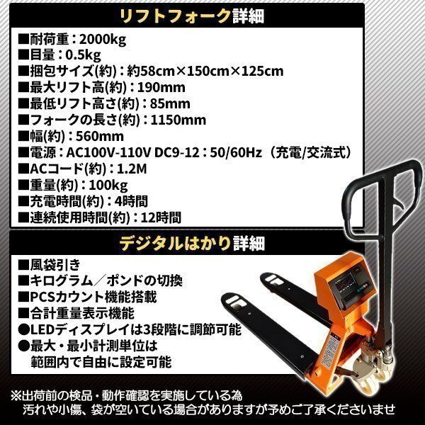 パレットスケール 2000kg 2t 計量器付きハンドパレット ハンドリフト ハンドパレット 充電式スケール デジパレ 計量器 計り スケール