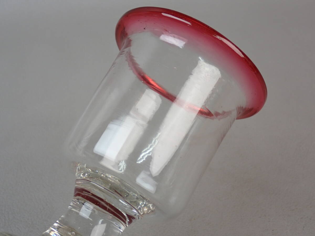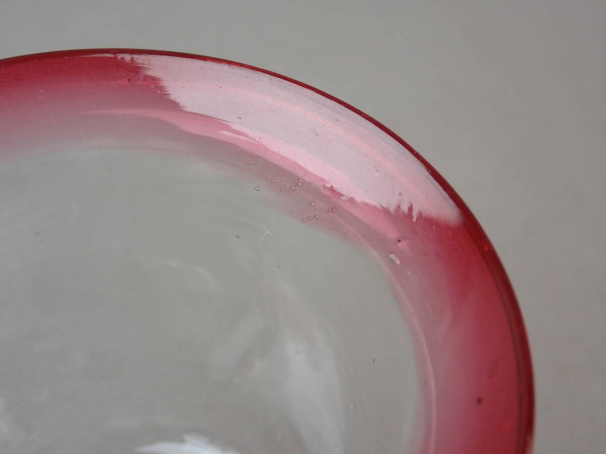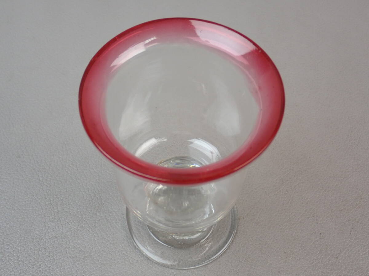 【骨董・レトロ】★古い ガラス★★赤縁氷コップ go026m33 大正ロマン アイスクリームコップ 和食器