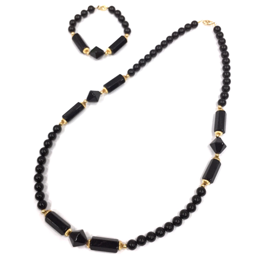 | 1円 留め具 14K 天然石 黒 ネックレス 他 ブレスセット 含 アクセサリー 総重量約83.3g 計2点 セット A20391 |