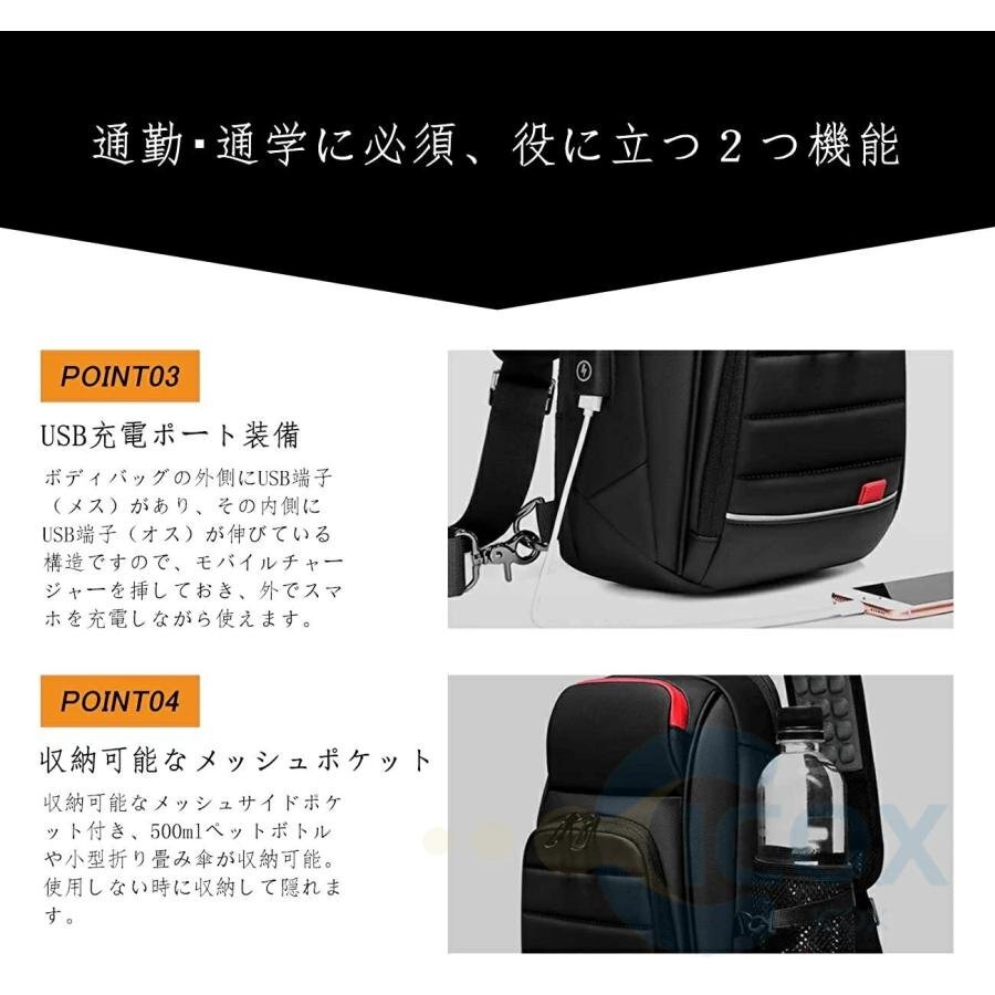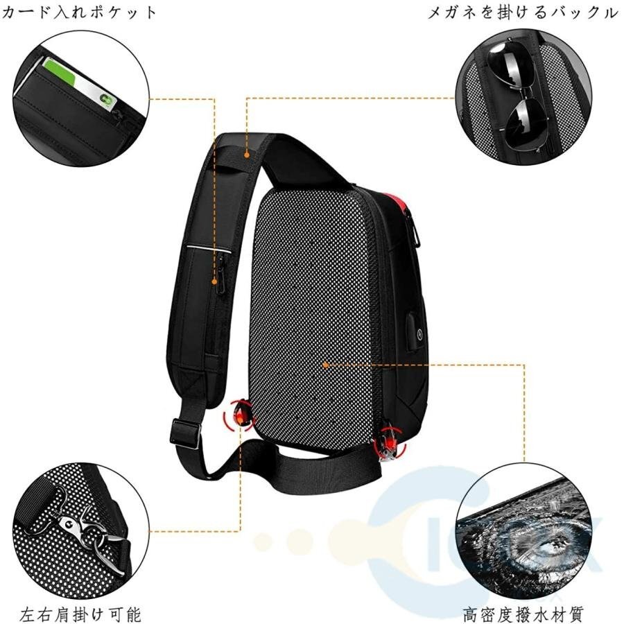 ボディバッグ メンズ 大容量 ワンショルダー 軽量 スポーツバッグ 斜めがけ ショルダーバッグ USBポート付き 超撥水 zhw030