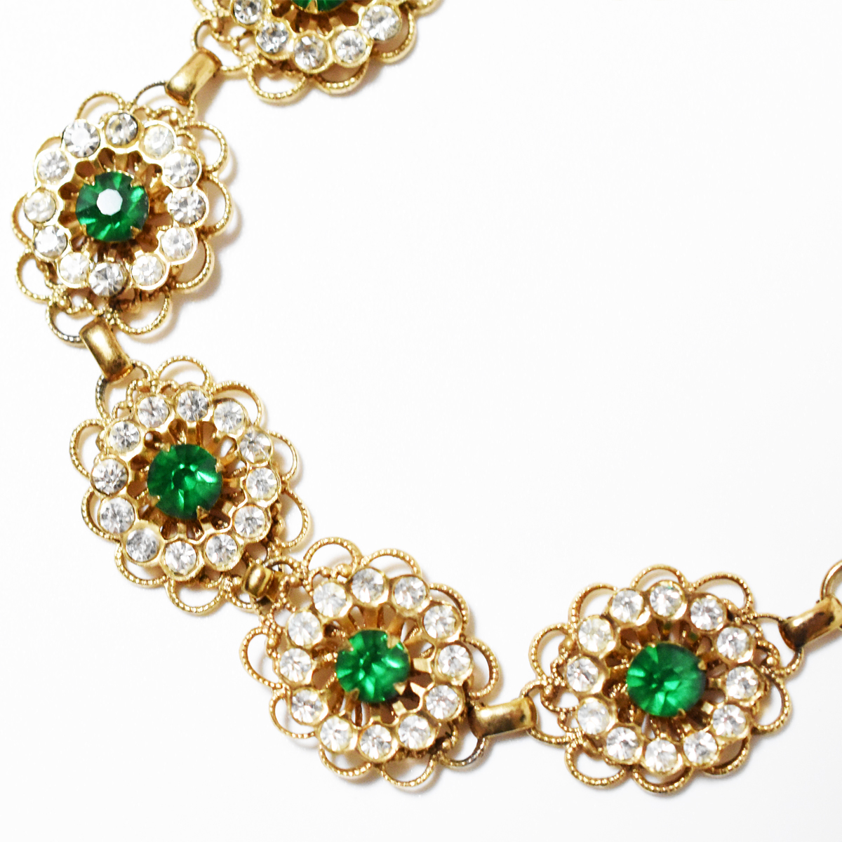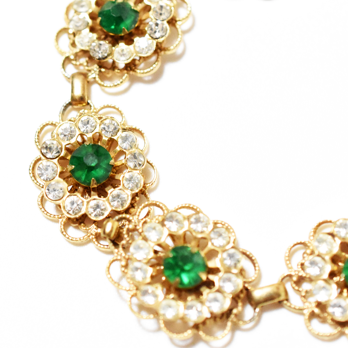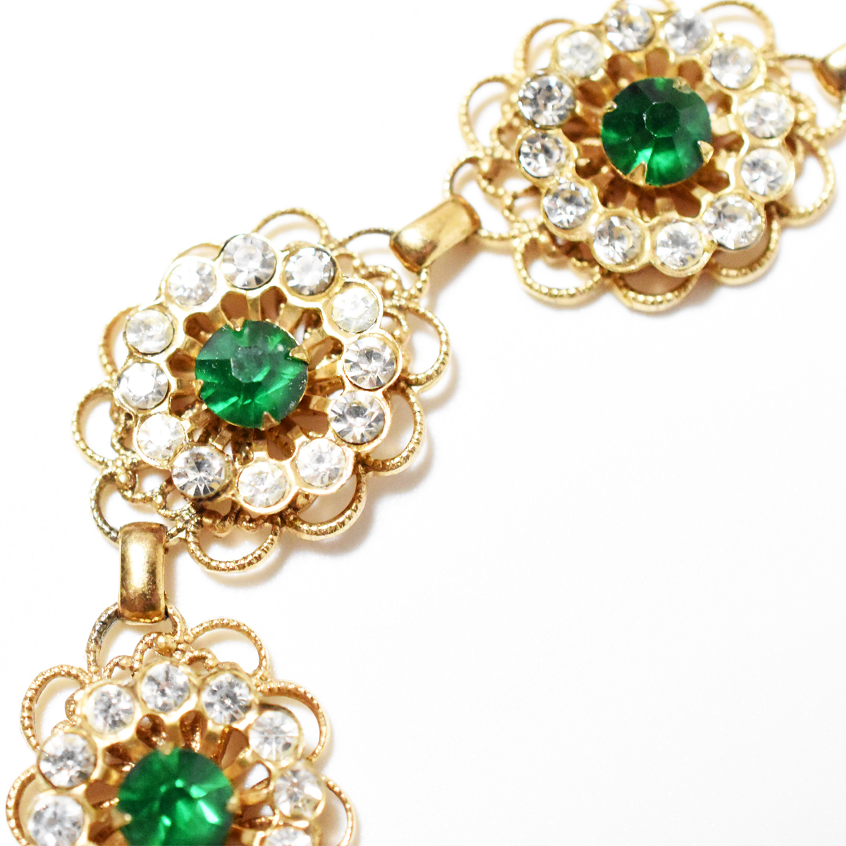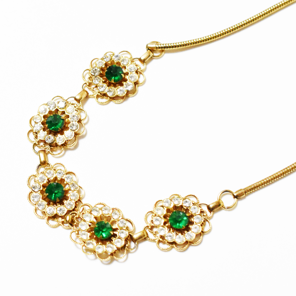 鮮やかなグリーンとクリアラインストーンが輝く美しいヴィンテージネックレス。