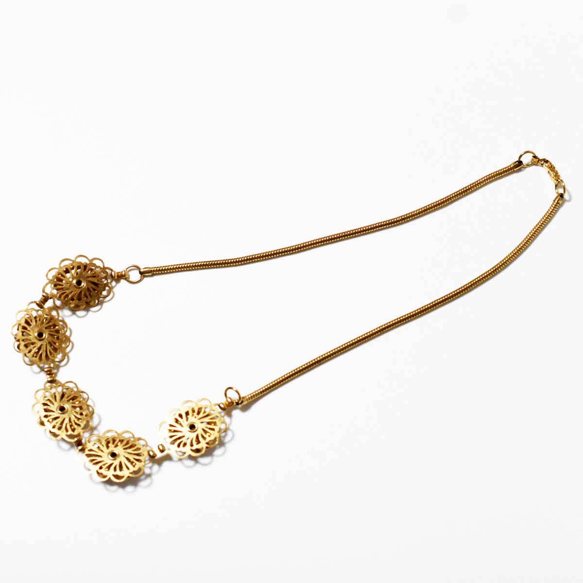 フラワーモチーフが5つ連なり、大変華やかなお品です。