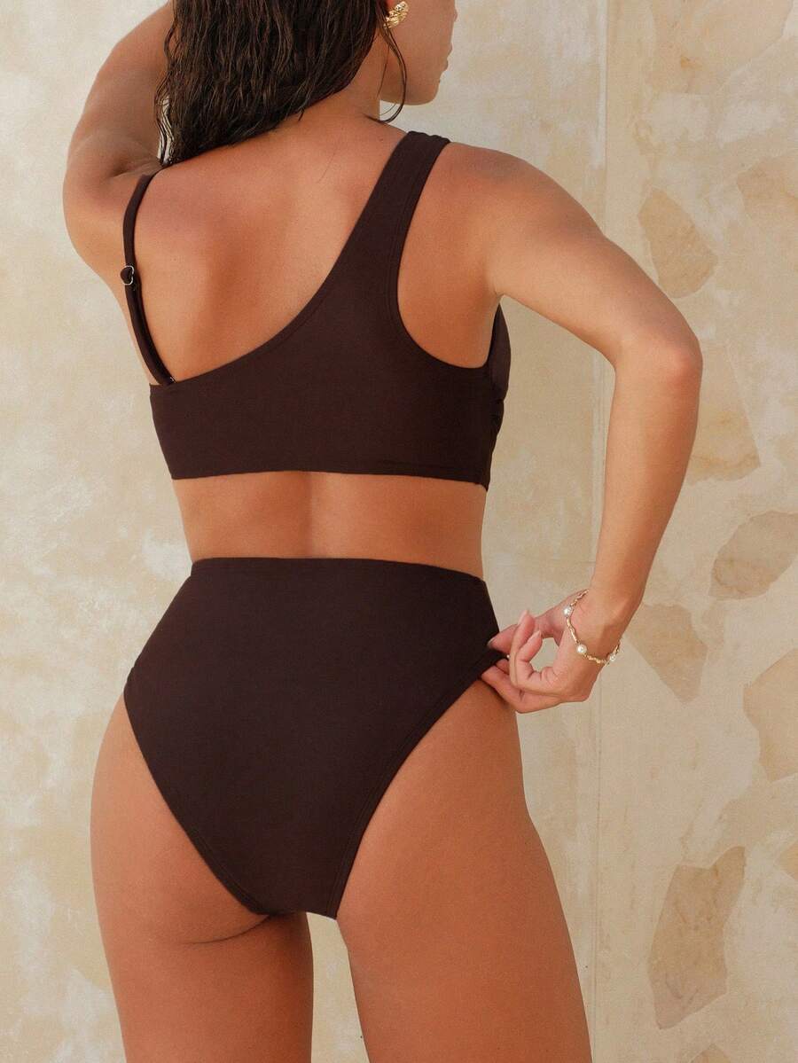 レディース 水着 ワンピース 金属アクセント付き ルーシュ入りバンドゥビキニ、エレガントで シンプル、ウィメンズ、バケーション