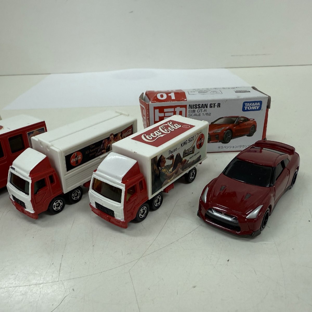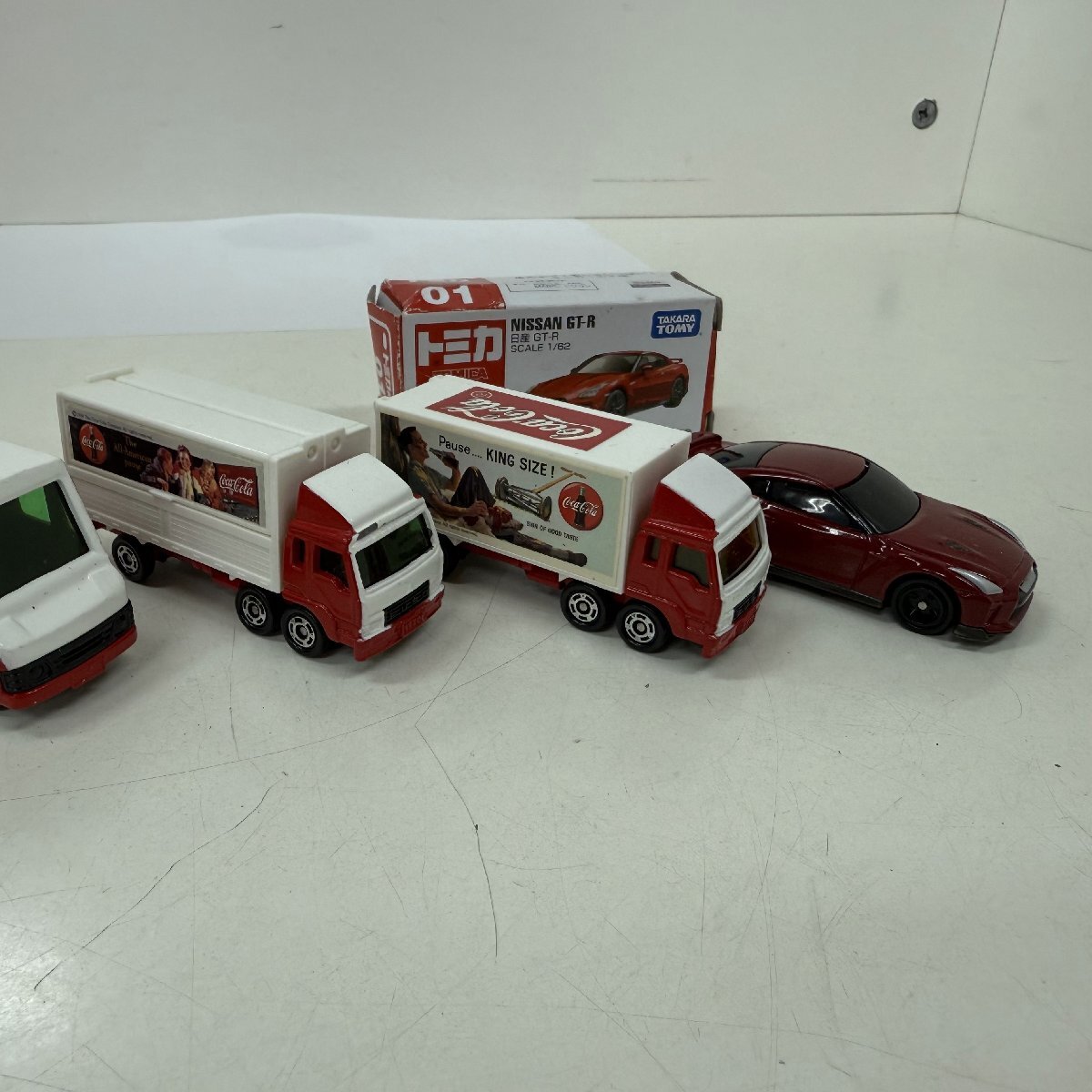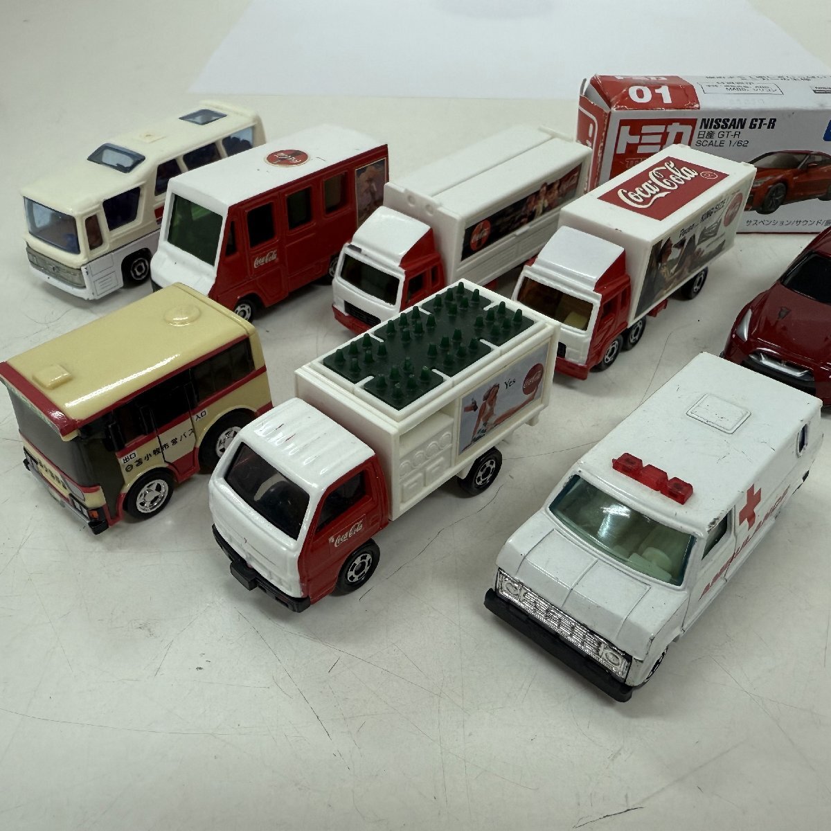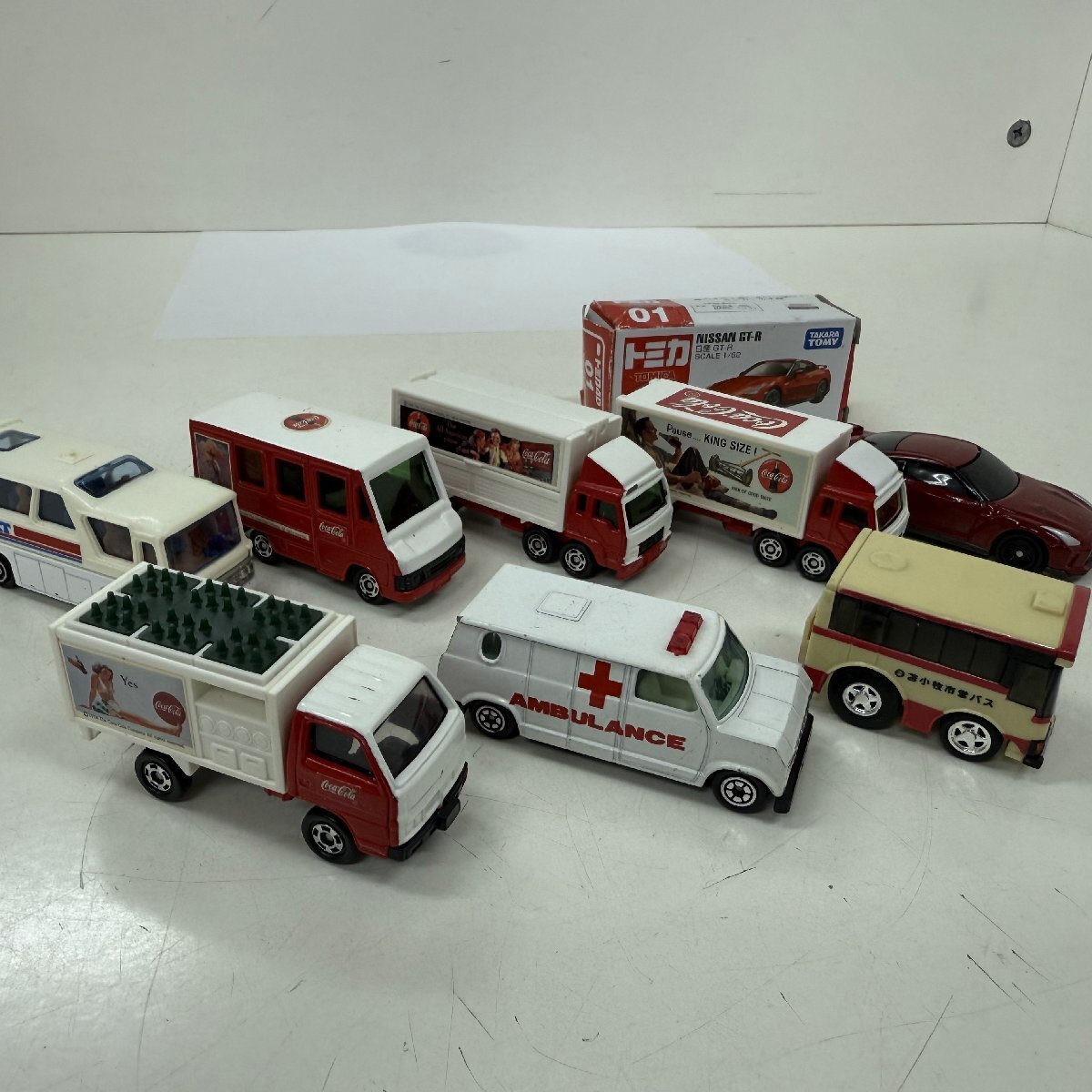 内訳はトミカ 4D01日産 GTR(ボタン電池を入れての試験しておらず)、1台、コカ・コーラ各種トラック4台、anbulance 1台