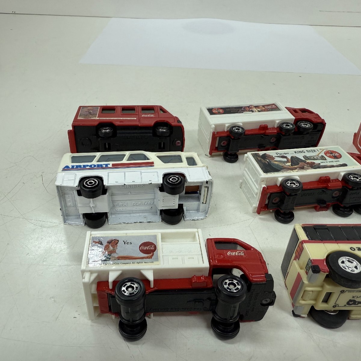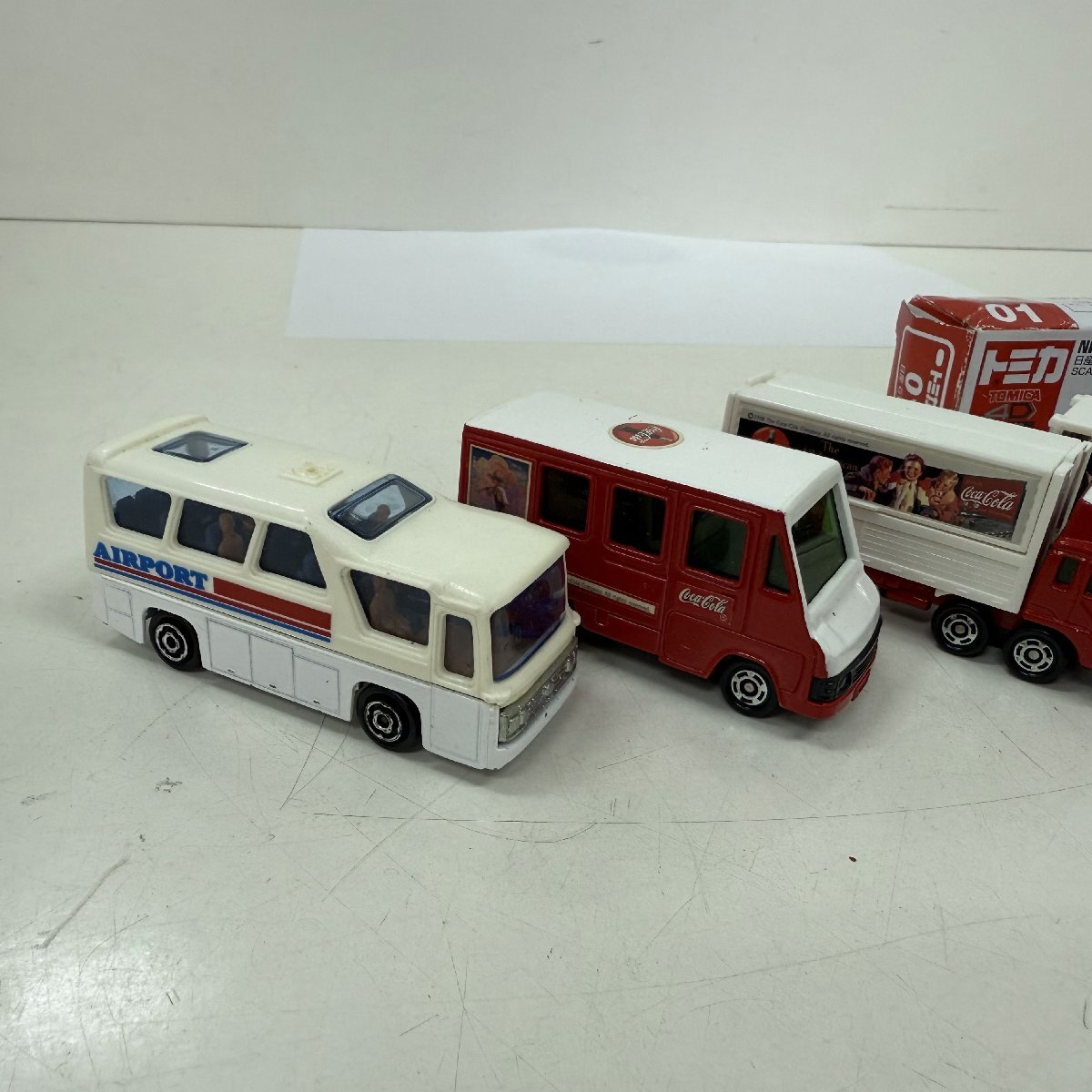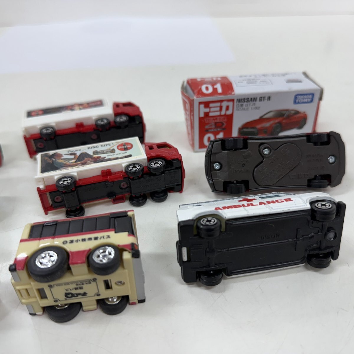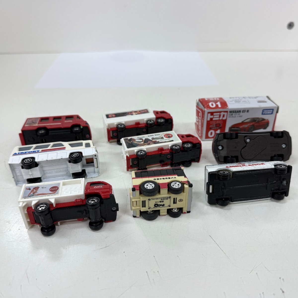 内訳はトミカ 4D01日産 GTR(ボタン電池を入れての試験しておらず)、1台、コカ・コーラ各種トラック4台、anbulance 1台