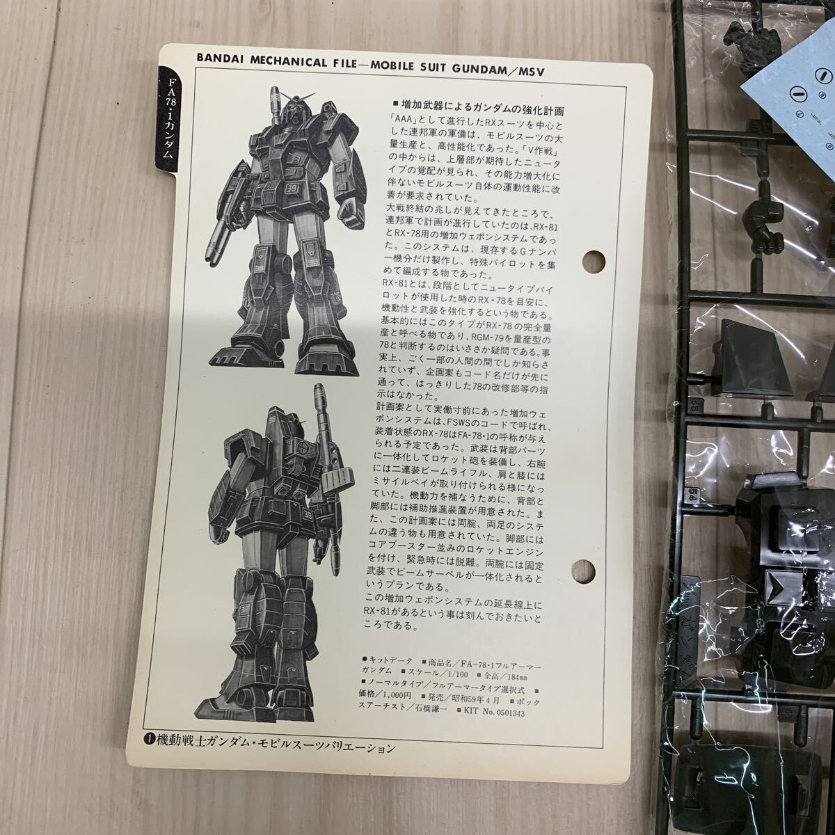 N618 ID-250829-493 【未組立】 BANDAI バンダイ 機動戦士ガンダム ガンダムフルアーマータイプ FA・78-1 1/100スケール プラモデル
