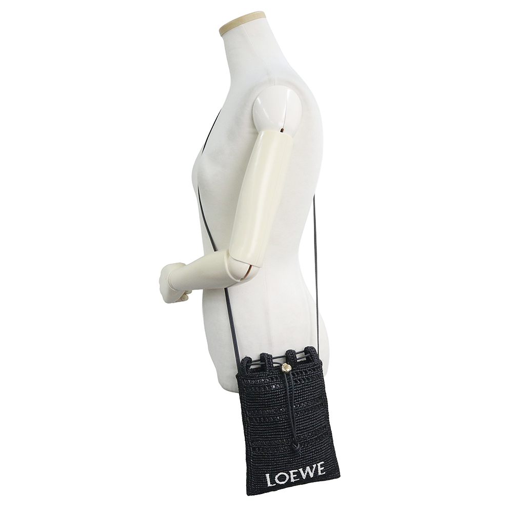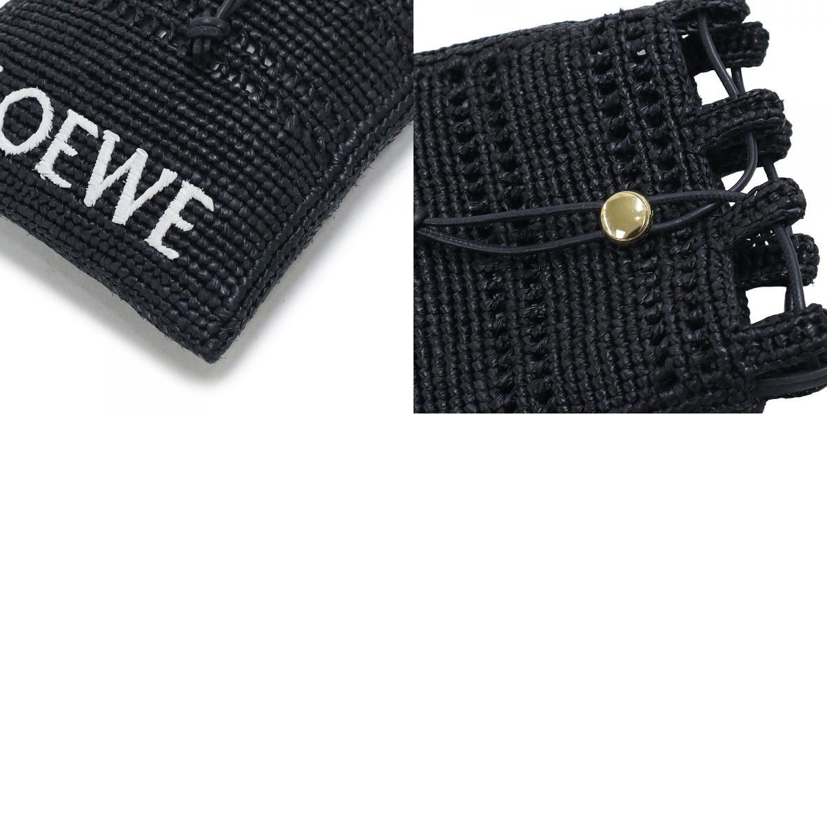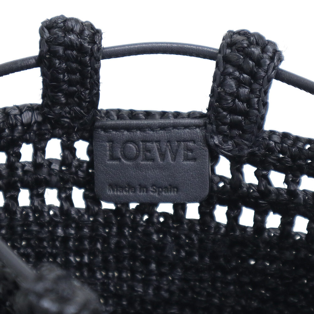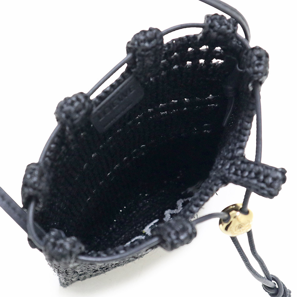 (未使用 展示品)ロエベ LOEWE ドローストリング ポケット ショルダーバッグ 斜め掛け ラフィア ブラック ゴールド金具 C756PHPX05
