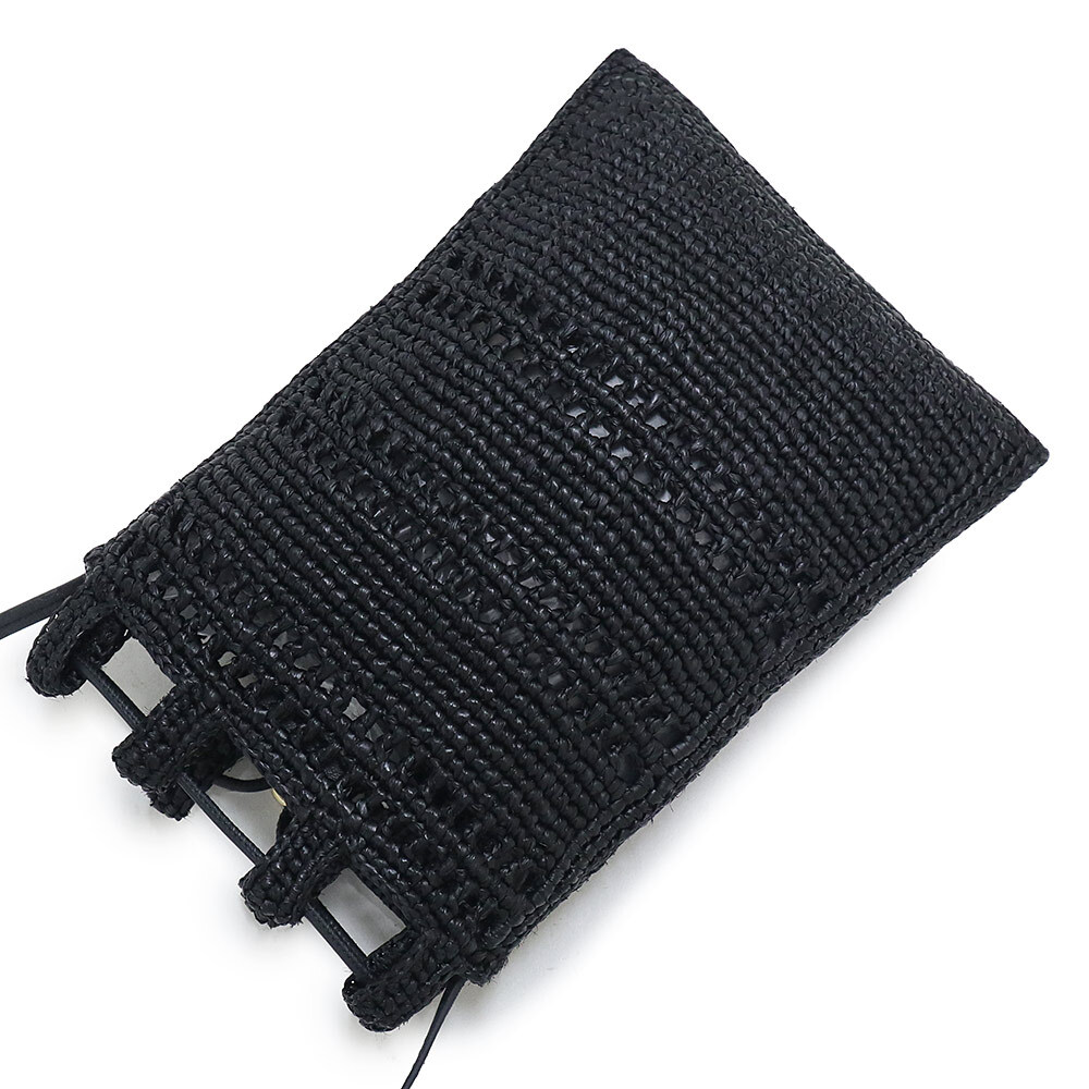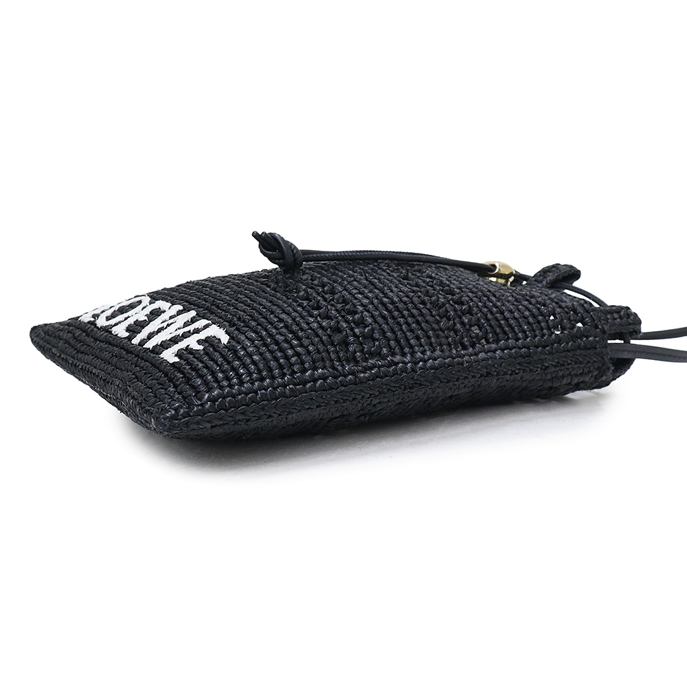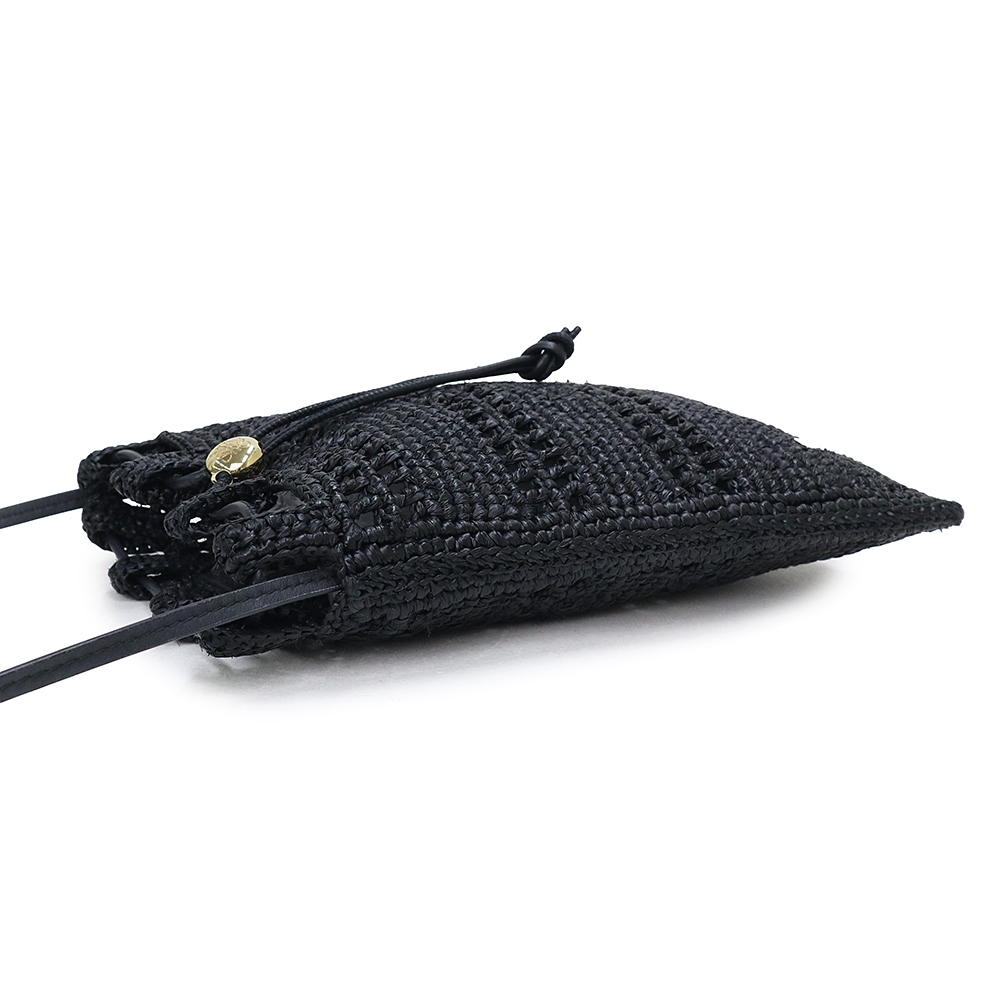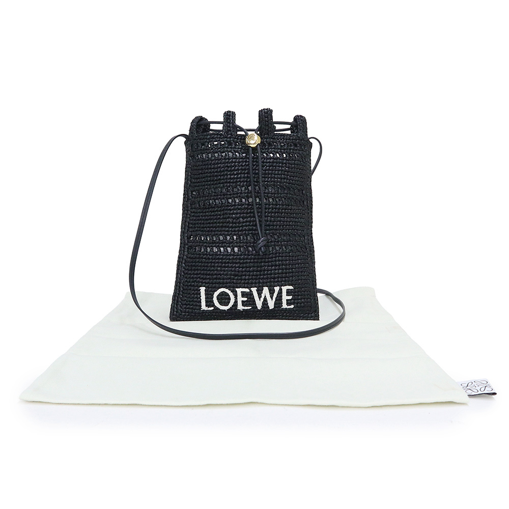 (未使用 展示品)ロエベ LOEWE ドローストリング ポケット ショルダーバッグ 斜め掛け ラフィア ブラック ゴールド金具 C756PHPX05