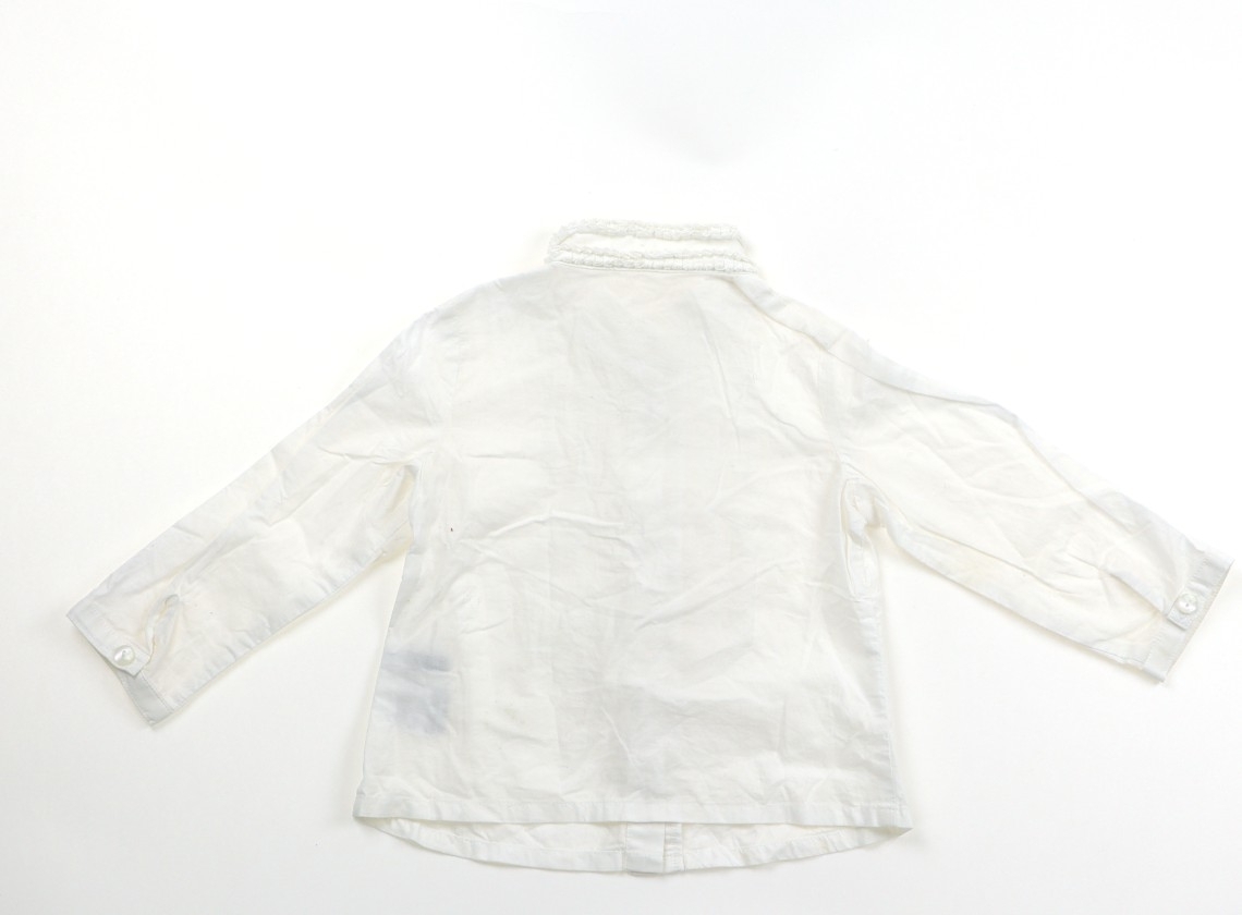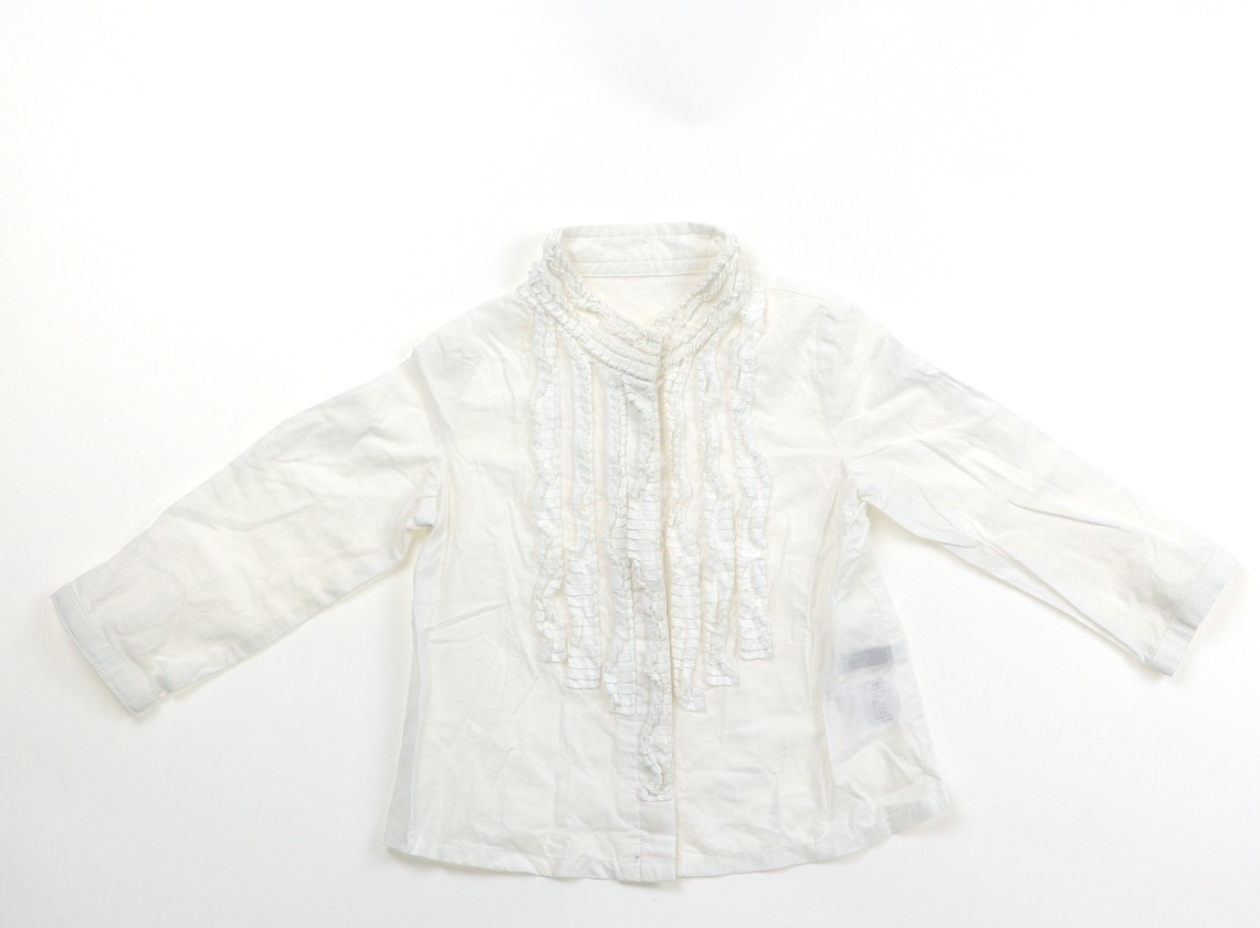 ボタンホールです。衿まわり、黄ばみが見受けられます。使用感ありますが、まだお使いいただけそうです。