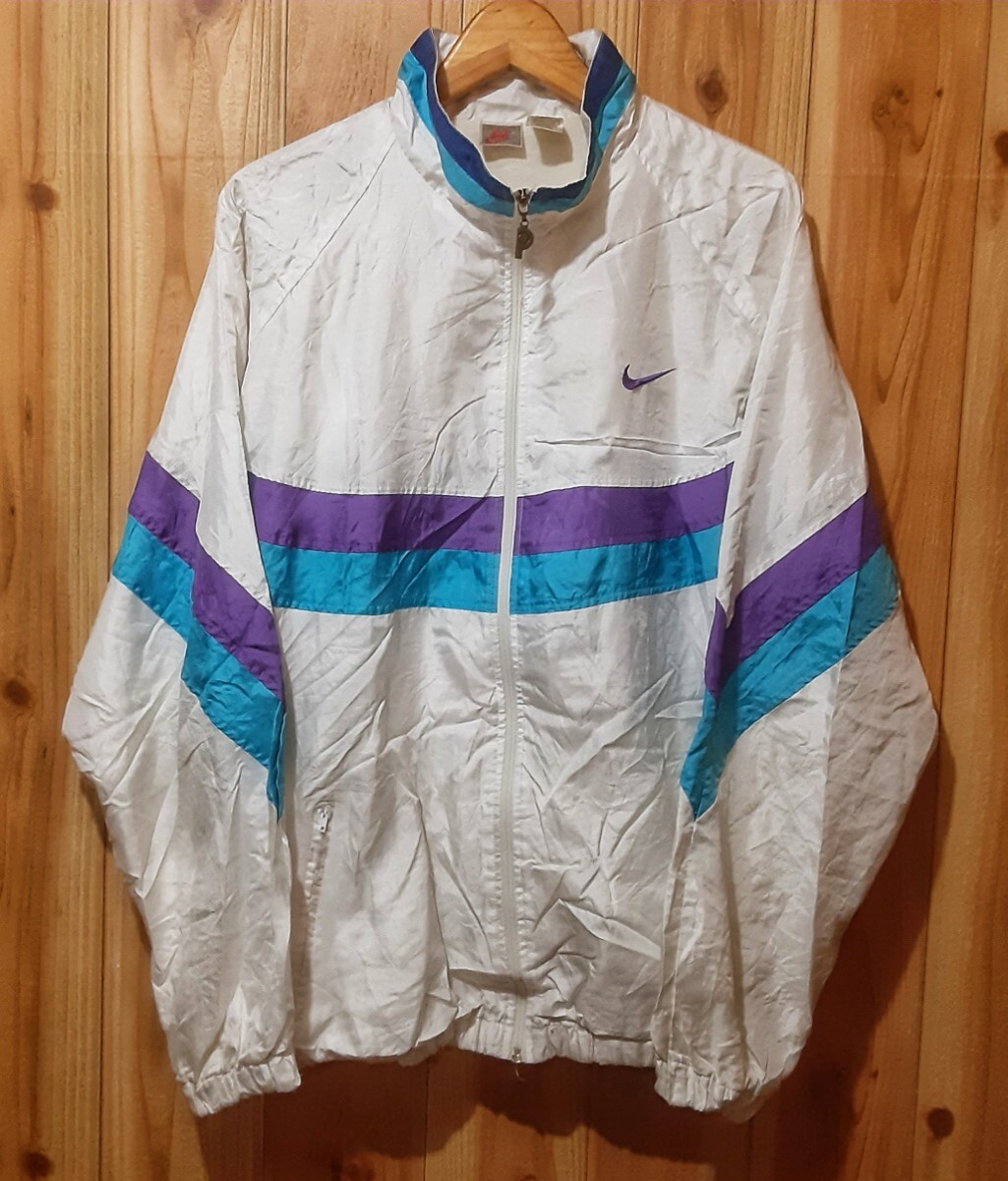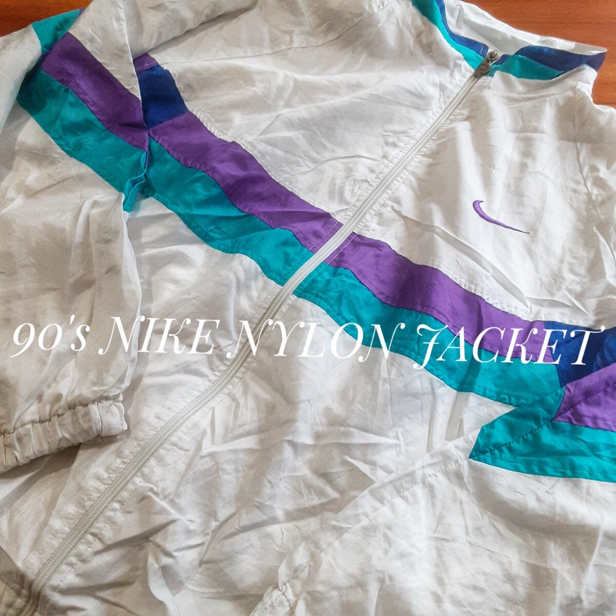こちらは、古着業界でも人気のございます、【NIKE/ナイキ】の希少な90'sヴィンテージ 銀タグ!刺繍ロゴ入りデザインのナイロン ブルゾン ジャケットになります!