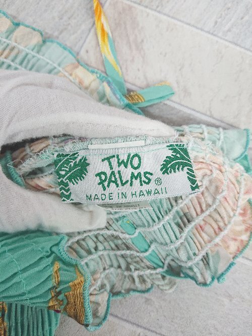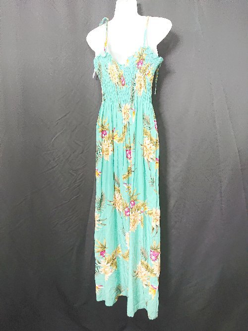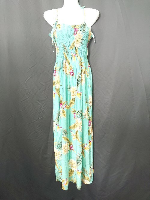 ◇ ⊂ TWO PALMS 花柄 トロピカル ハワイアン ロング キャミソール ワンピース サイズF グリーン系 マルチ レディース E
