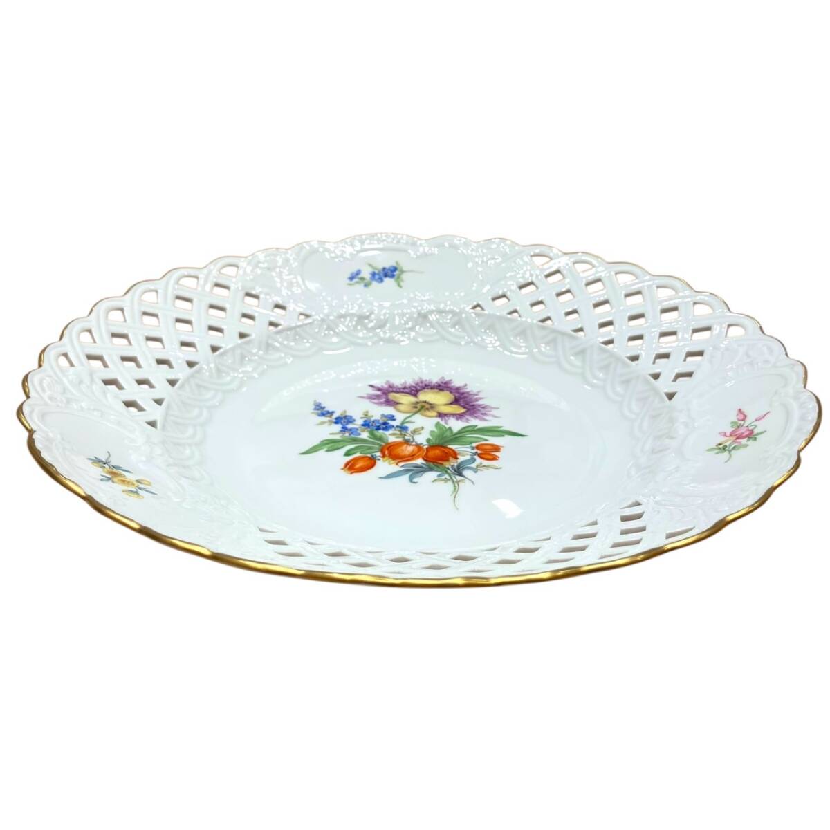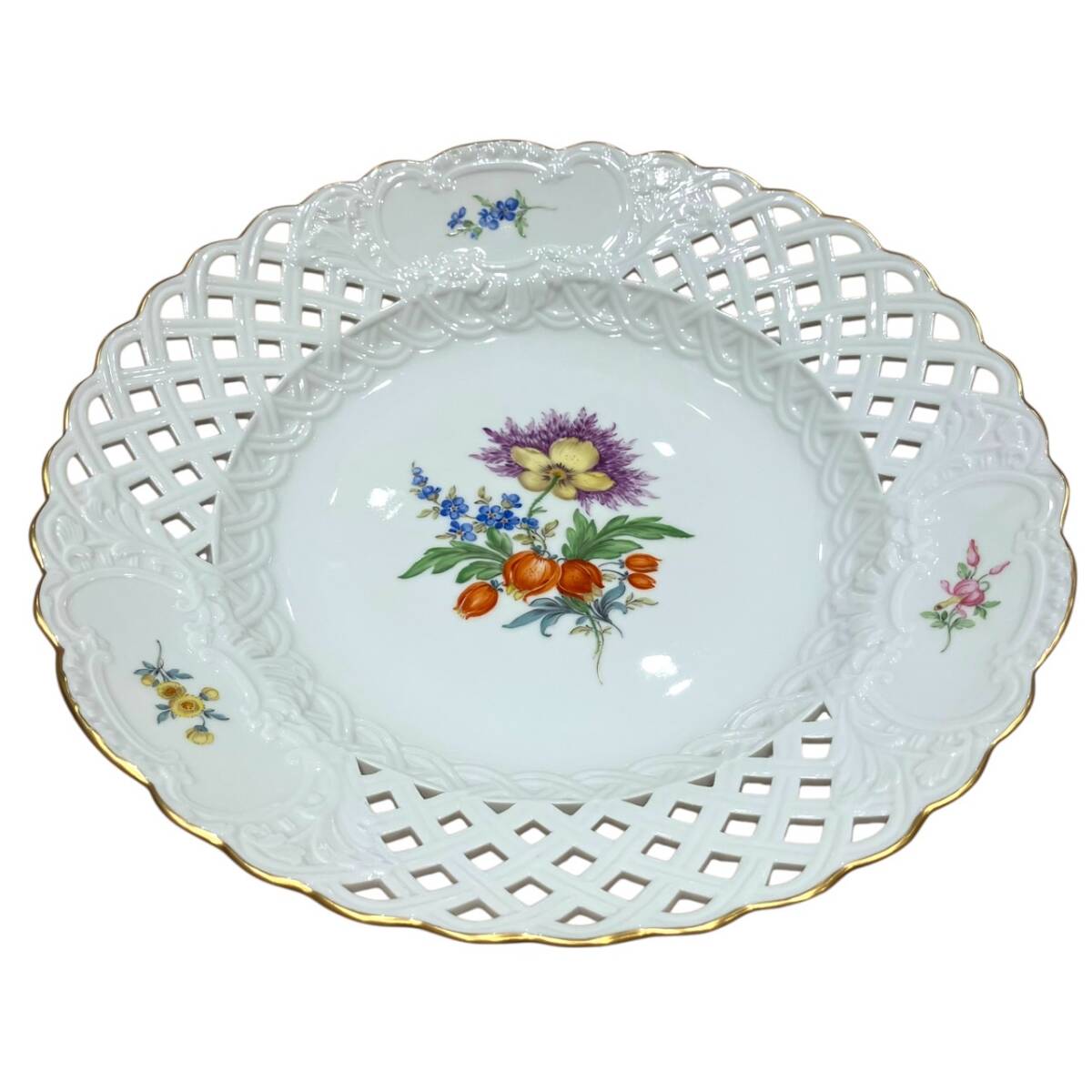 | ★Meissen マイセン ベーシックフラワー 花柄 プレート トレー 大皿 透かし 38.5cm ホワイト 洋食器 |