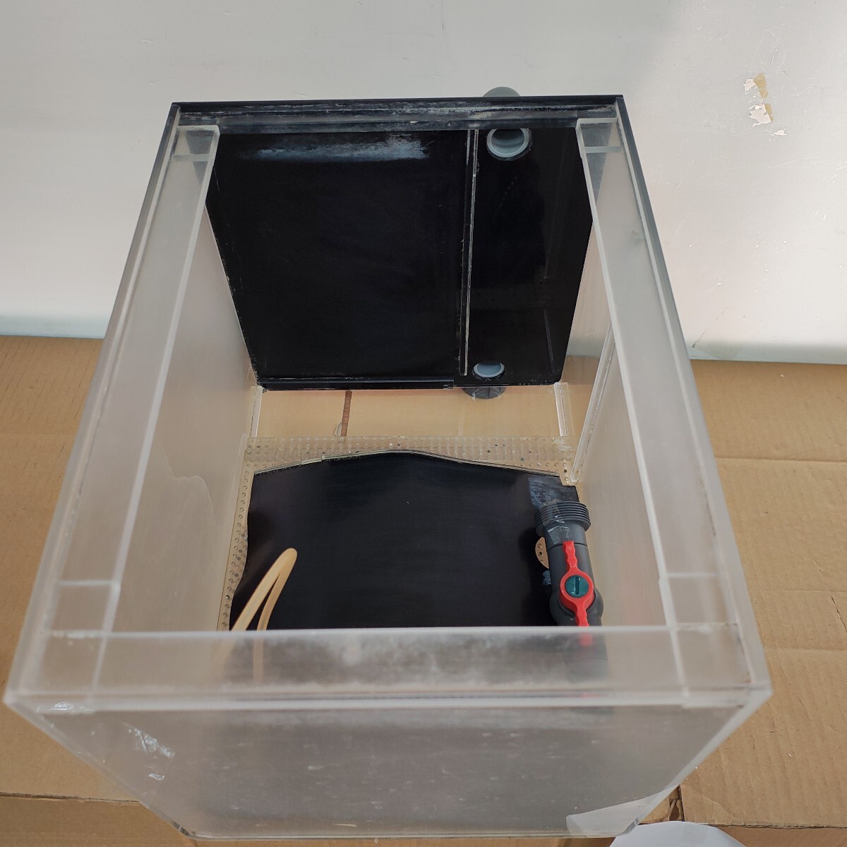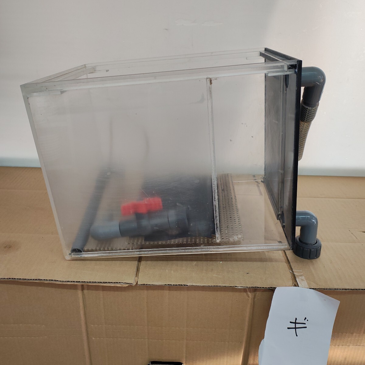 ギ 中古 アクリル水槽 オーバーフロー水槽 幅29×奥行38.5×高さ30㎝ 底面パンチングボードフィルター ボールバルブ ドレンパイプ付き