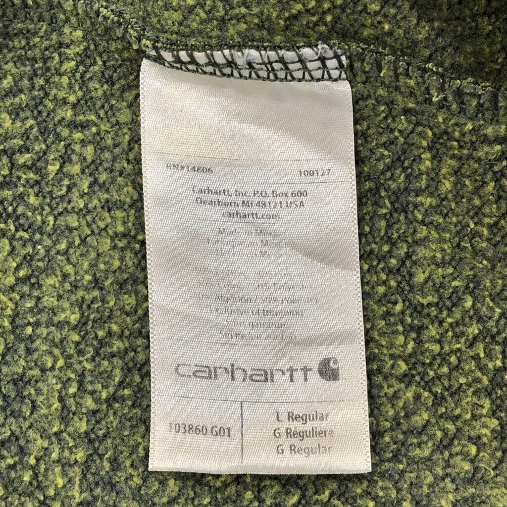 【商品管理番号】 R9195 【ブランド】 Carhartt/カーハート 【サイズ】 L 【実寸サイズ】 肩幅:約55cm 着丈:約74cm 身幅:約68cm 袖丈:約64cm 【主な素材】 表地 : コットン 【色】 グリーン 【仕様】 スウェット 袖プリント 55203 【状態】 汚れ:袖先、腹部、裾 特記事項:使用感あり |