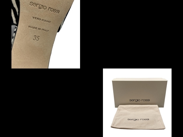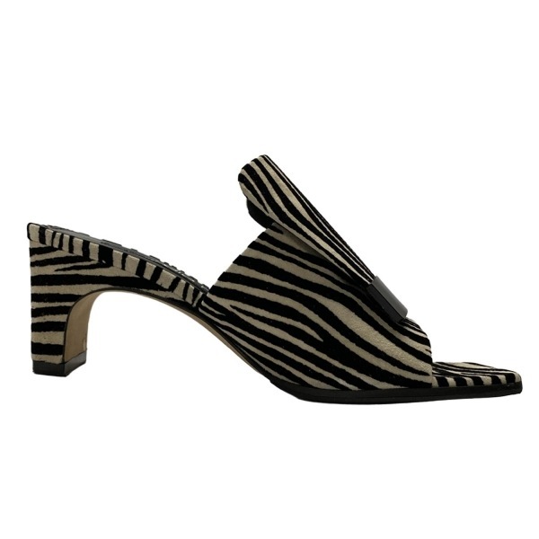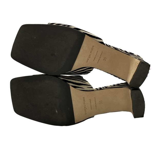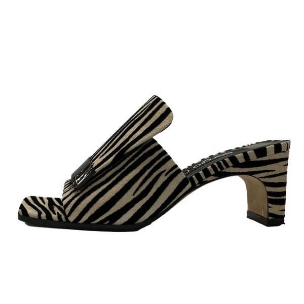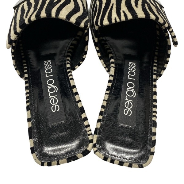 セルジオロッシ sergio rossi ミュール 35 - ベージュ×黒 レディース ゼブラ柄/アウトソール張替済 靴