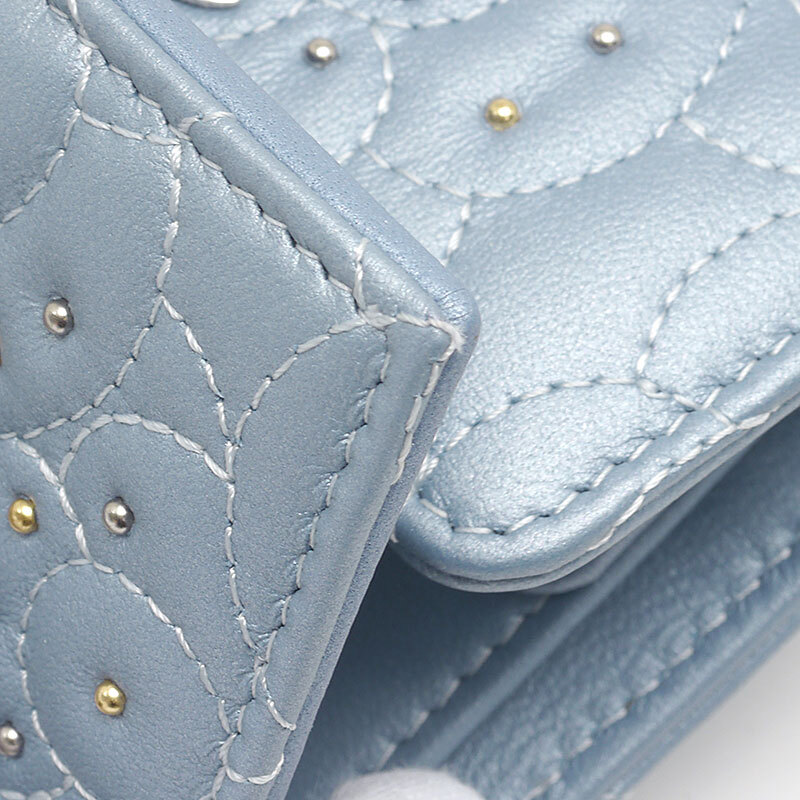 ・メタリックブルーのレザーにメタルスタッズとストーンがあしらわれています。使用感のほとんど感じられない極美品です。