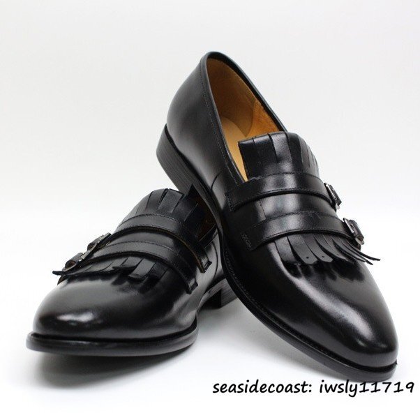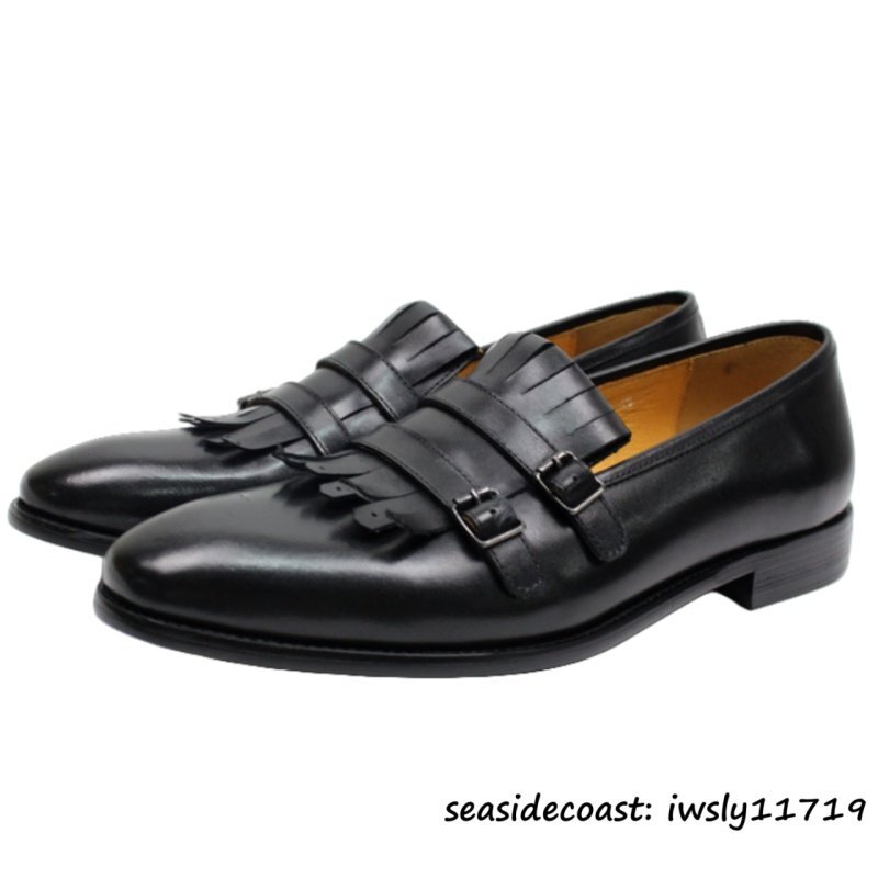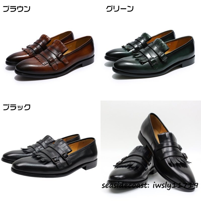 定価9万◆超希少 牛革 ローファー スリッポン 本革 ビジネスシューズ メンズ 職人手作り タッセル 紳士靴 レザーシューズ ブラック 26.5cm
