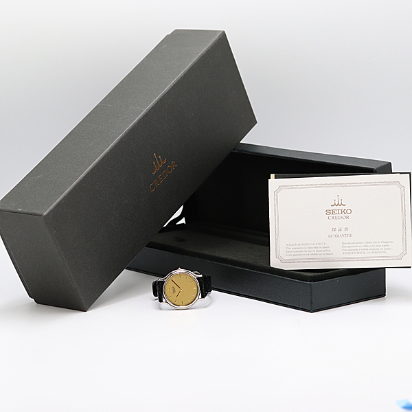 デッドストック級 保/箱付 稼動 美品 セイコー クレドール シグノ 8J81-6A30 ゴールド文字盤 QZ メンズ腕時計 2950200 3ANT KTU 15694 ABC