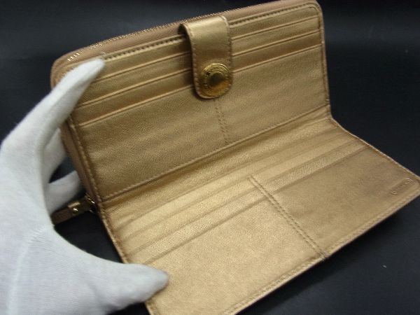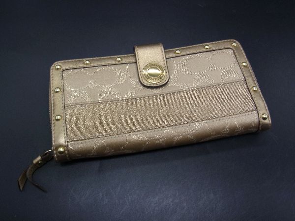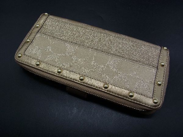 ■美品■ COACH コーチ シグネチャー キャンバス×レザー 二つ折り 長財布 ウォレット 札入れ 小銭入れ ゴールド系 DH1313