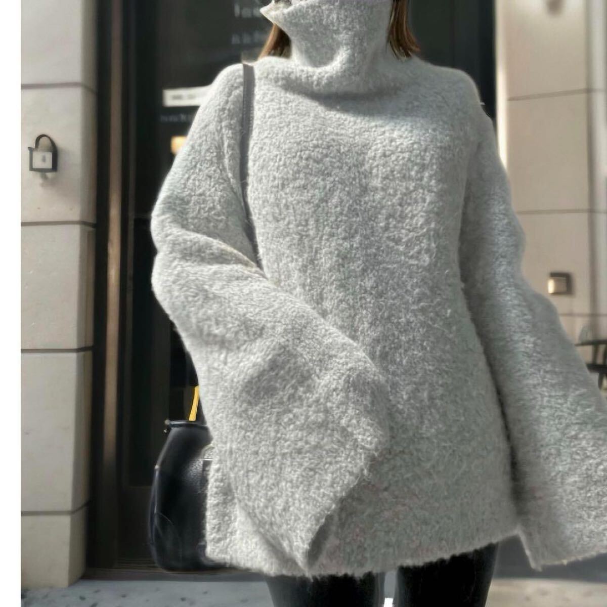 ふわっふわで暖かいハイネックニットです。オーバーサイズが可愛いです!ゆったりリラックスして着用できます。