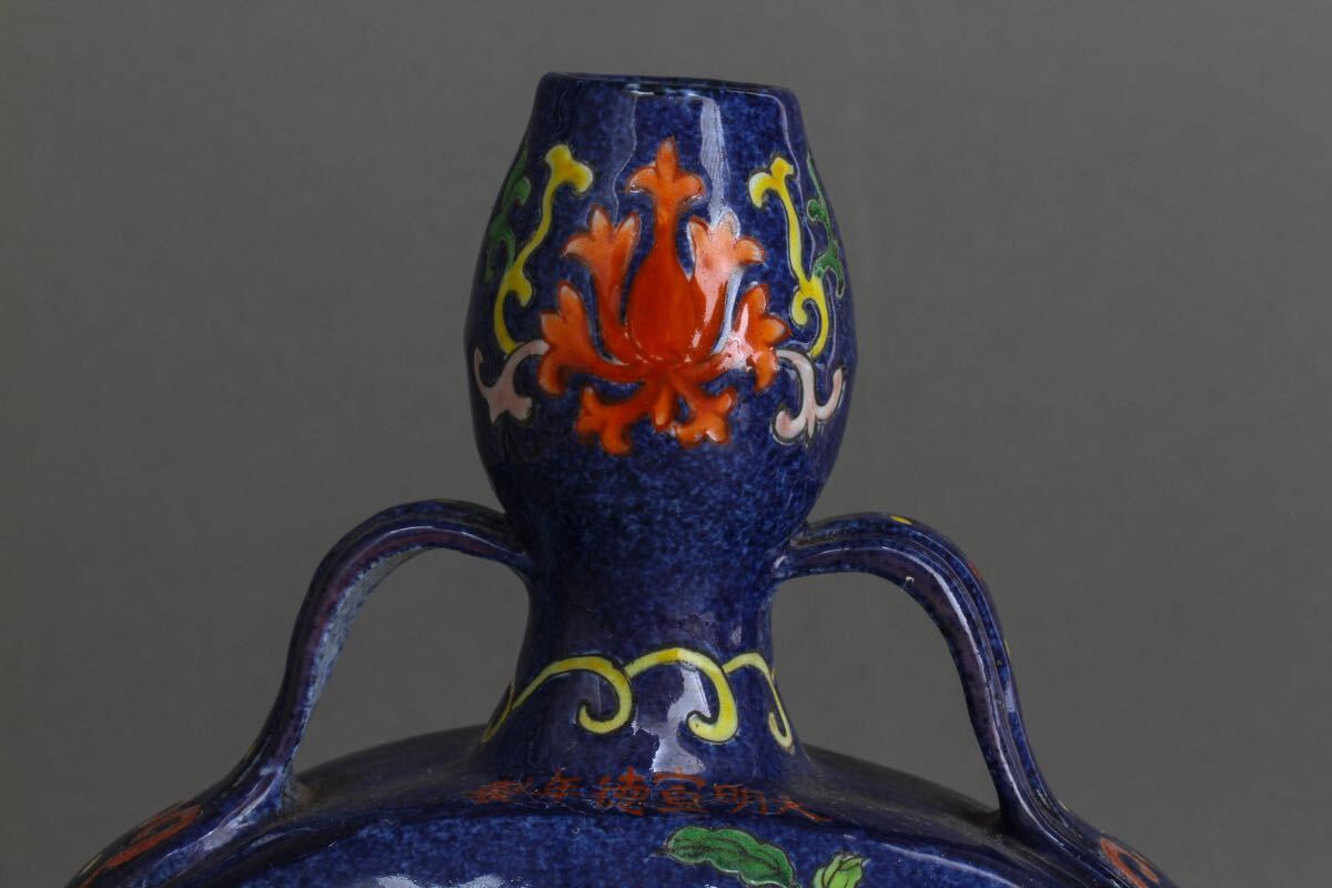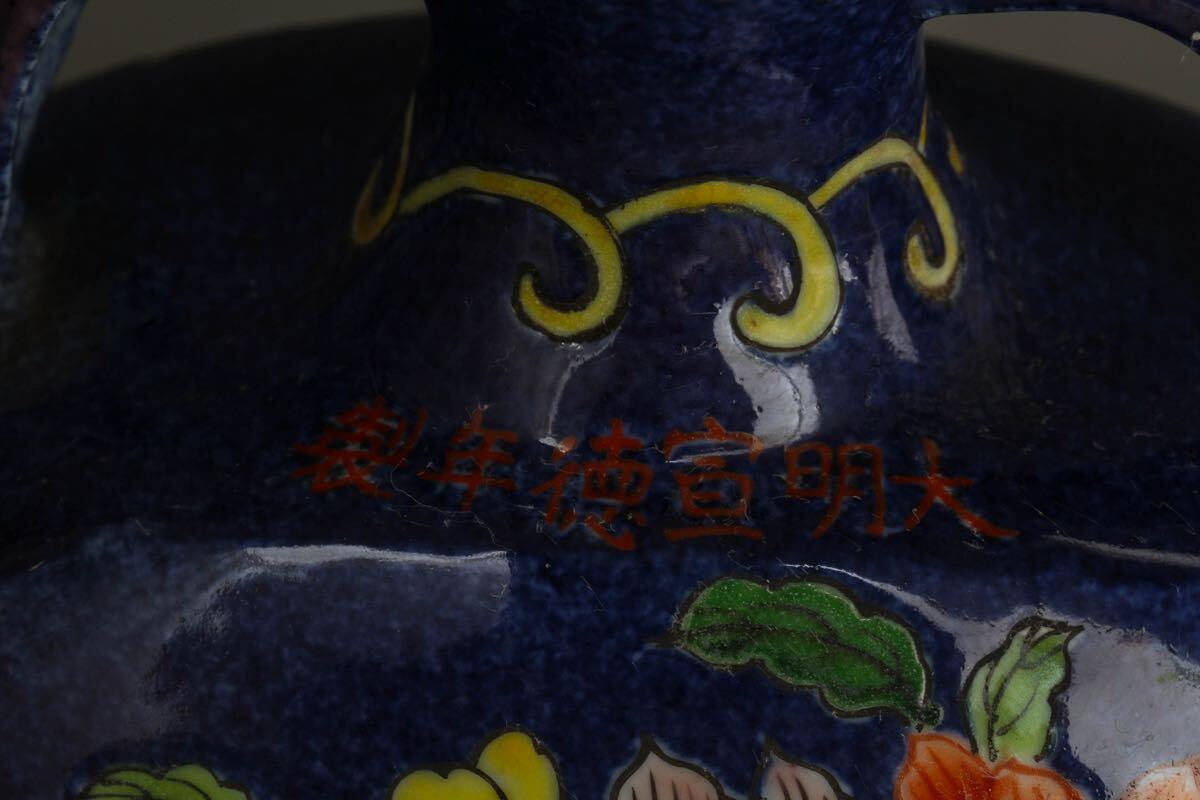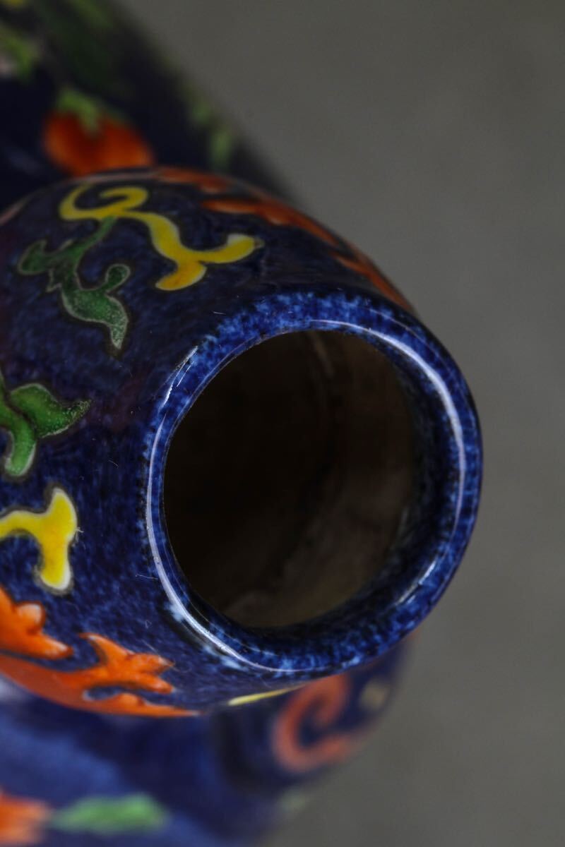 【久】1593 在銘 瑠璃釉粉彩花鳥図花瓶 時代品  唐物 中国美術 宣徳
