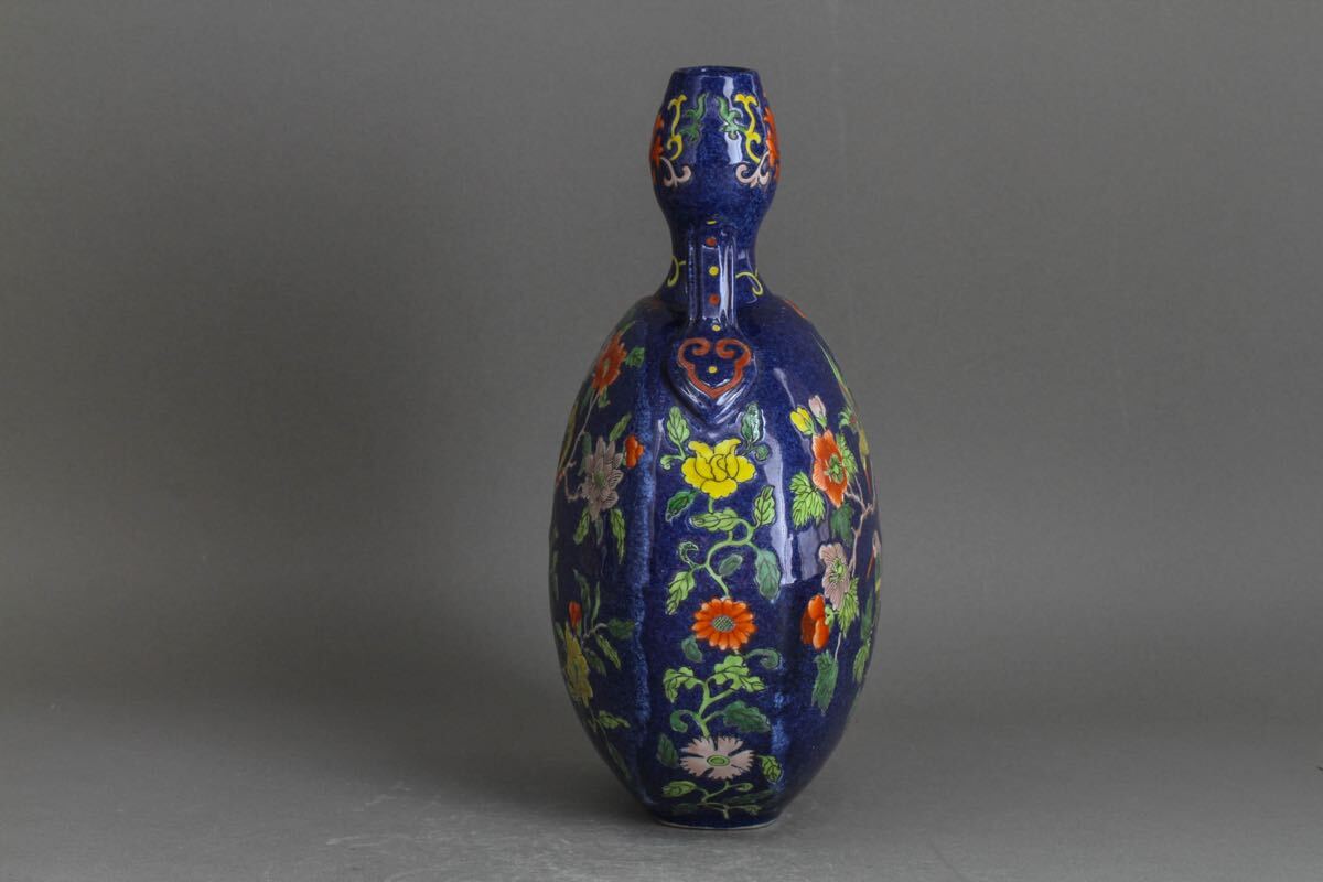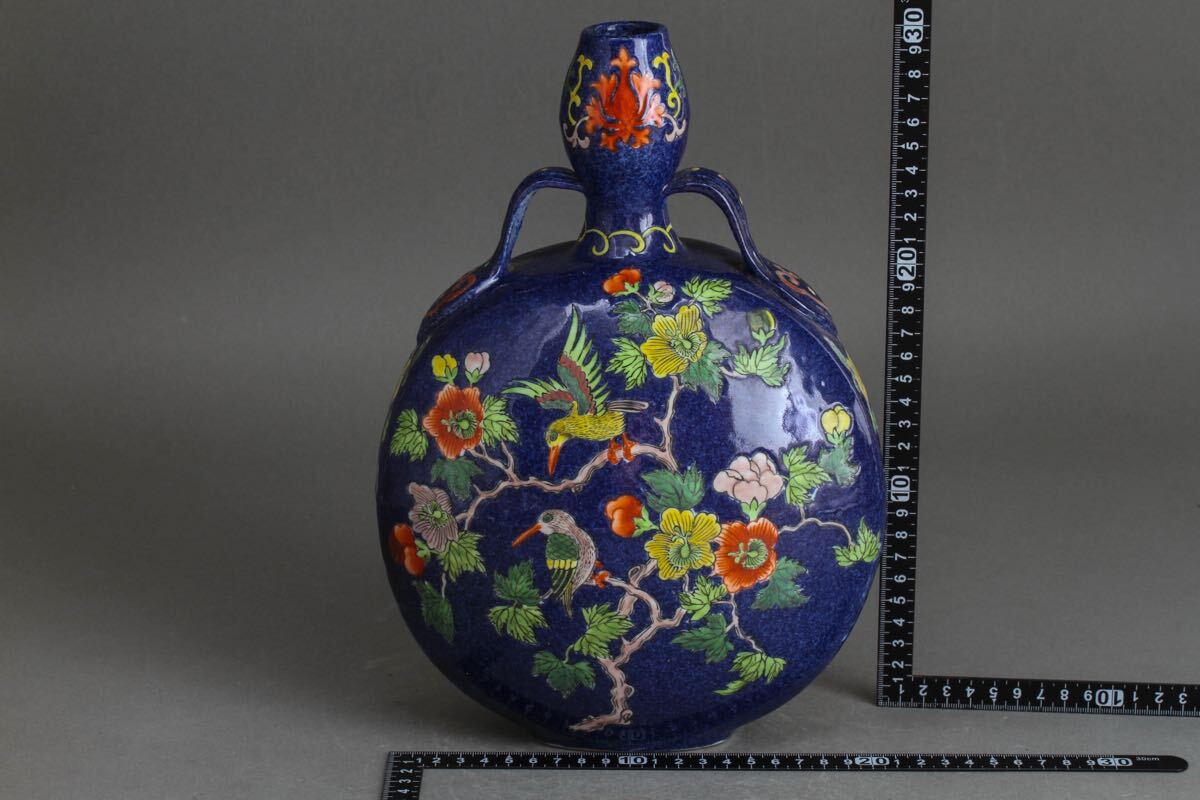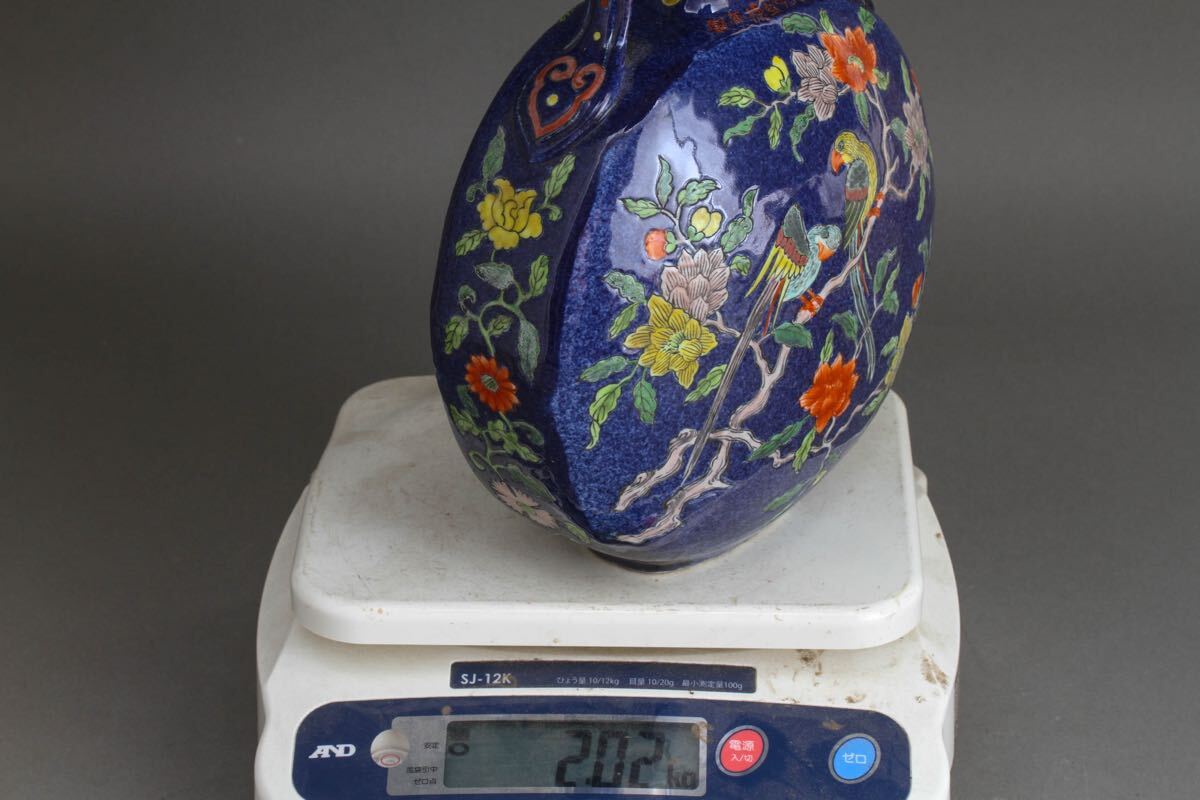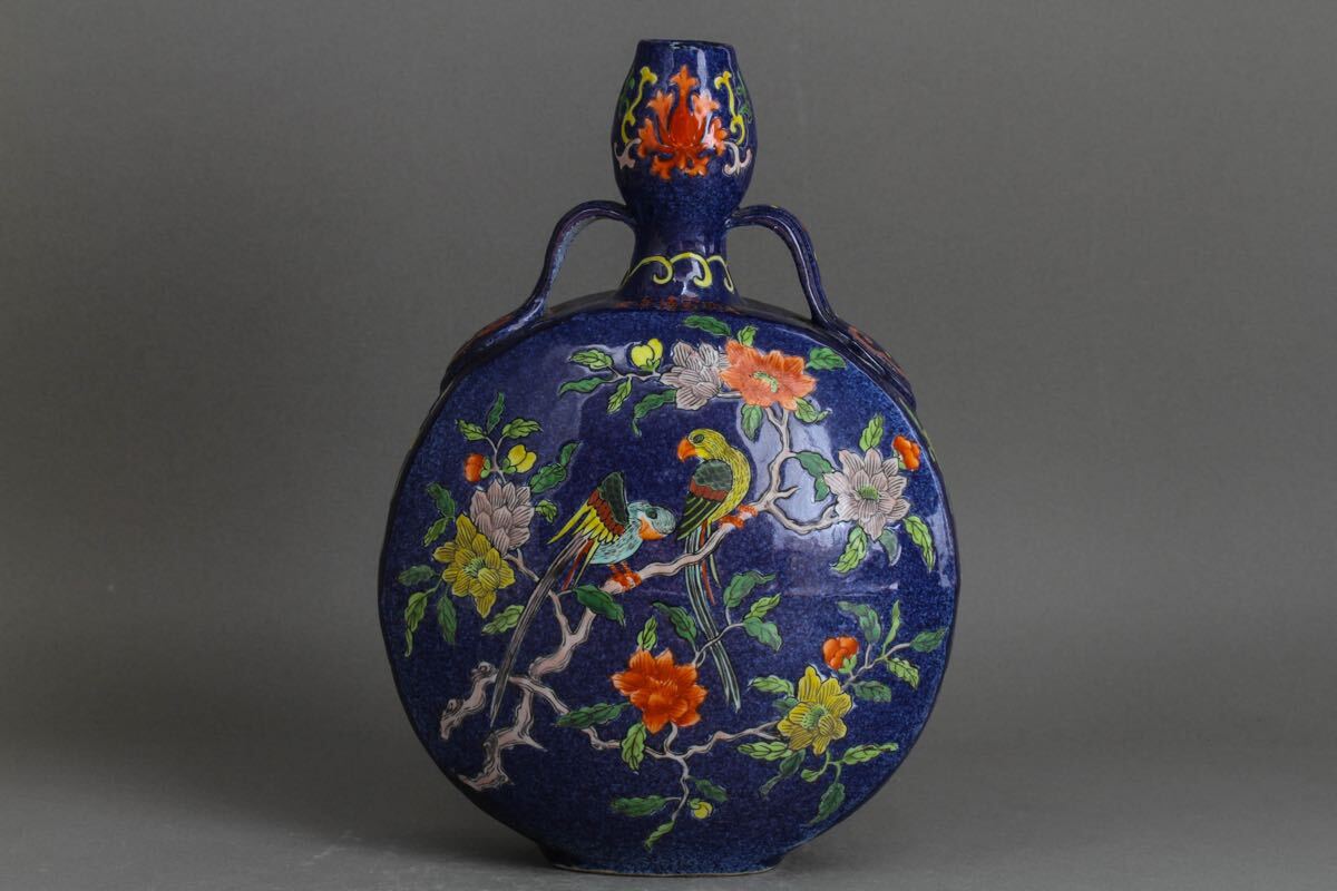 【久】1593 在銘 瑠璃釉粉彩花鳥図花瓶 時代品  唐物 中国美術 宣徳