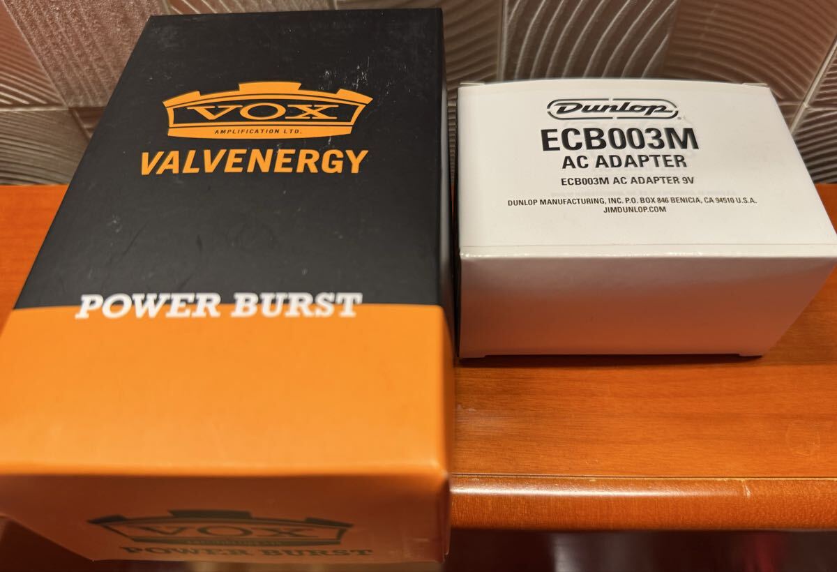 。この為、VOX輸入元K社純正アダプターよりもノイズ少ないとレビューされていて且つ660mmAと大容量のJIM DUNLOP9v アダプターECB-003Mとセットで出品します。POWER BURST と同時購入した品でこちらも元箱付属です。この組み合わせにより真空管特有の粘り・音圧感があります。更に3wayミニスイッチがあり多彩な鳴りを楽しめます。