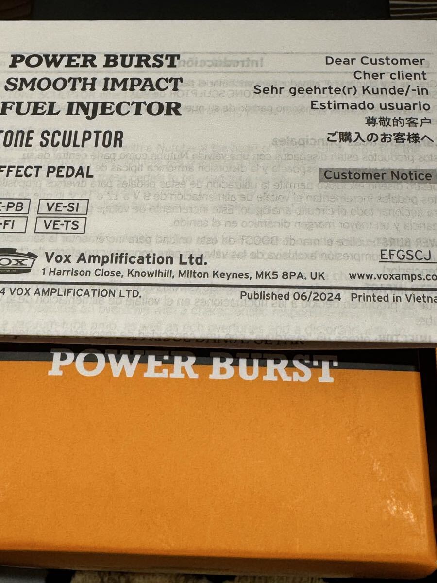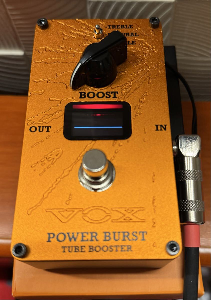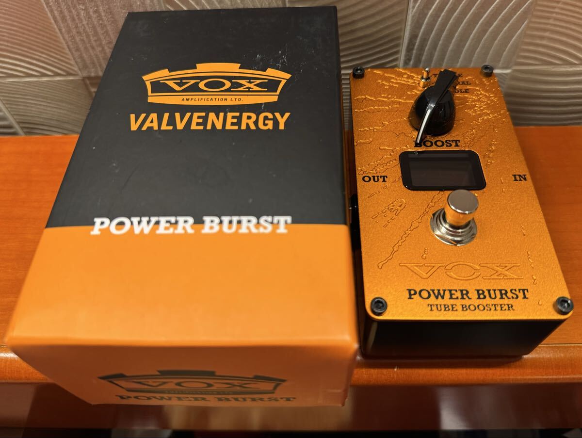 名門VOX社の新世代真空管NUTUBE搭載ブースター、POWER BURST Valvenergy 2nd Seriesの裏面のマジックテープ以外は新同美品(新品購入から1週間以内)です。