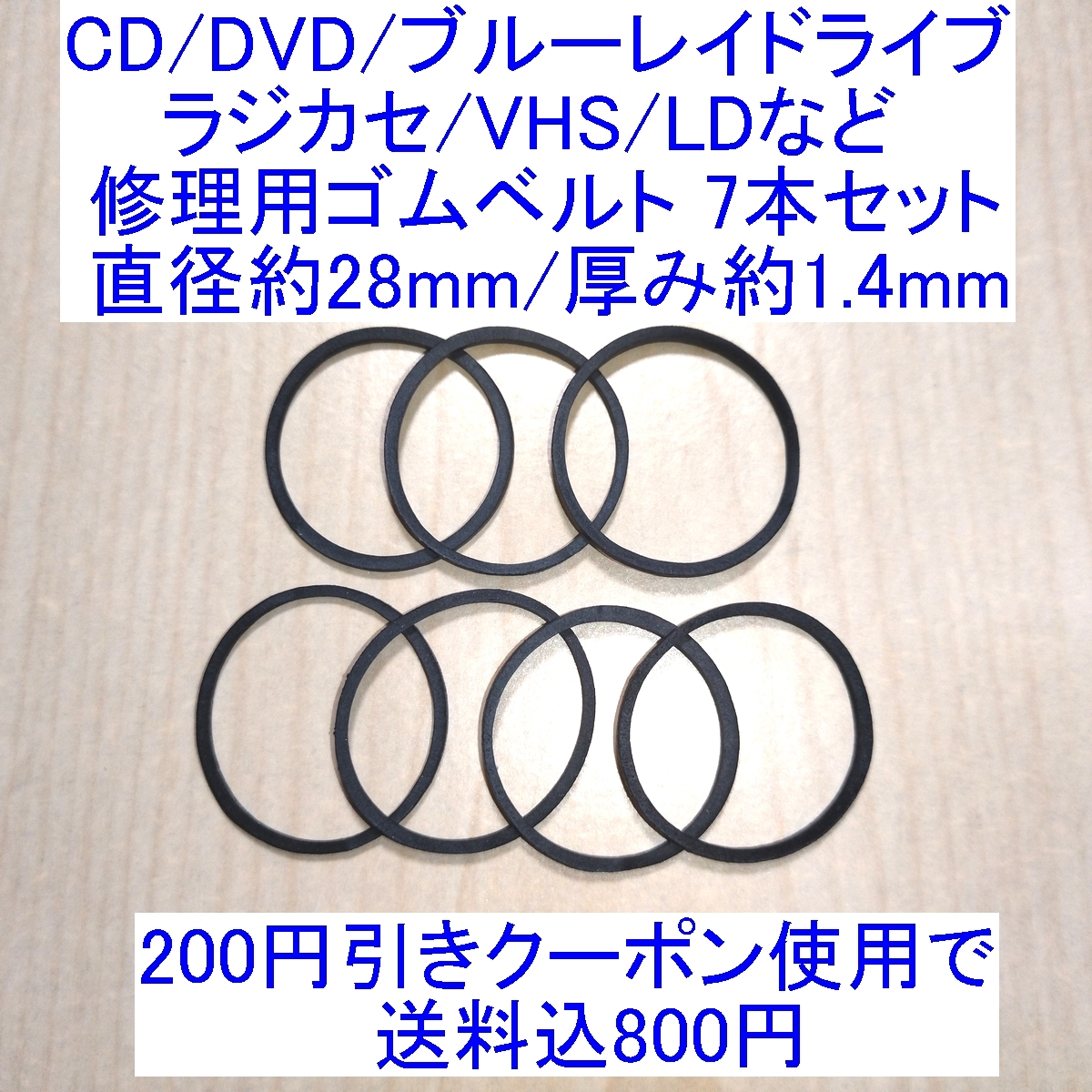 CD/DVD/ブルーレイドライブ/ラジカセ/VHS/MD/LD(レーザーディスク)などの修理/補修用ゴムベルト 7本セットです。
