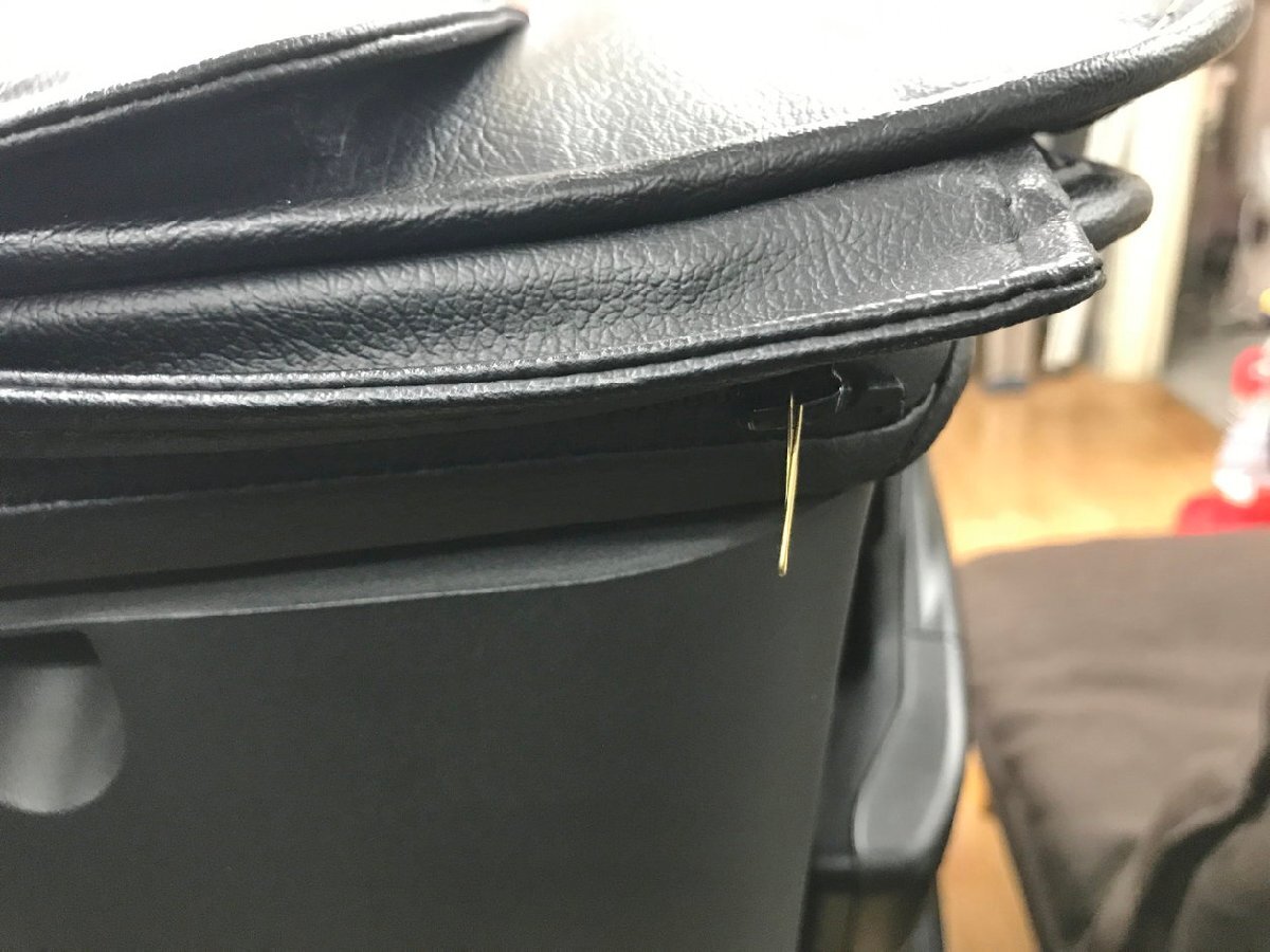 背もたれを留めているファスナーの持ち手が取れているので、クリップがつけてあります。