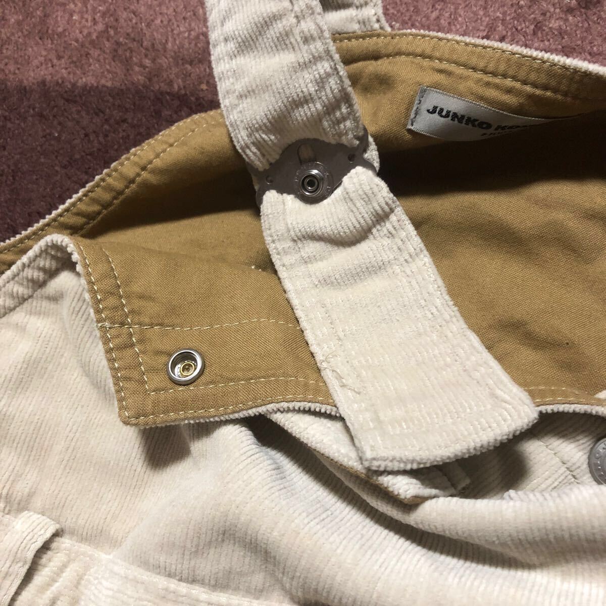 色はベージュ、素材はコールテンだと思いますが写真で判断して下さい!両親からのもらいものですが忘れてサイズアウトです!