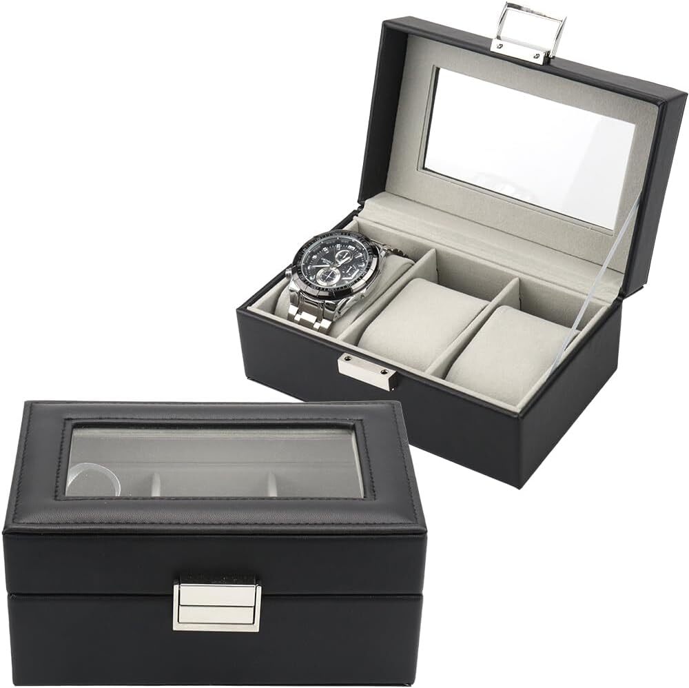 3本の腕時計を収納でき、透明ガラス蓋でコレクションを美しく見せながら保護します。