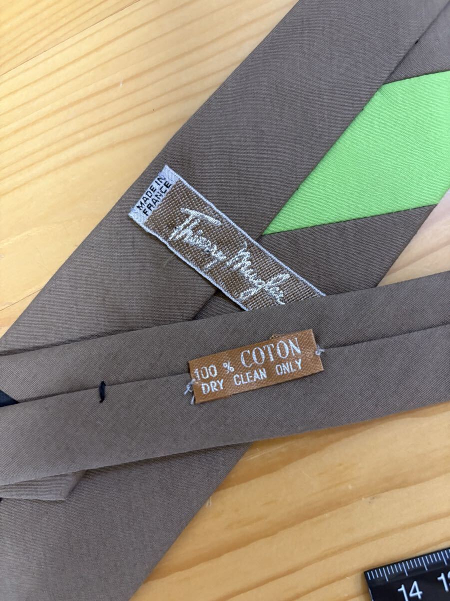 【希少美品】Thierry Muglerフランス製 コットンネクタイ 大剣約7.5cm ベージュ ティエリーミュグレー