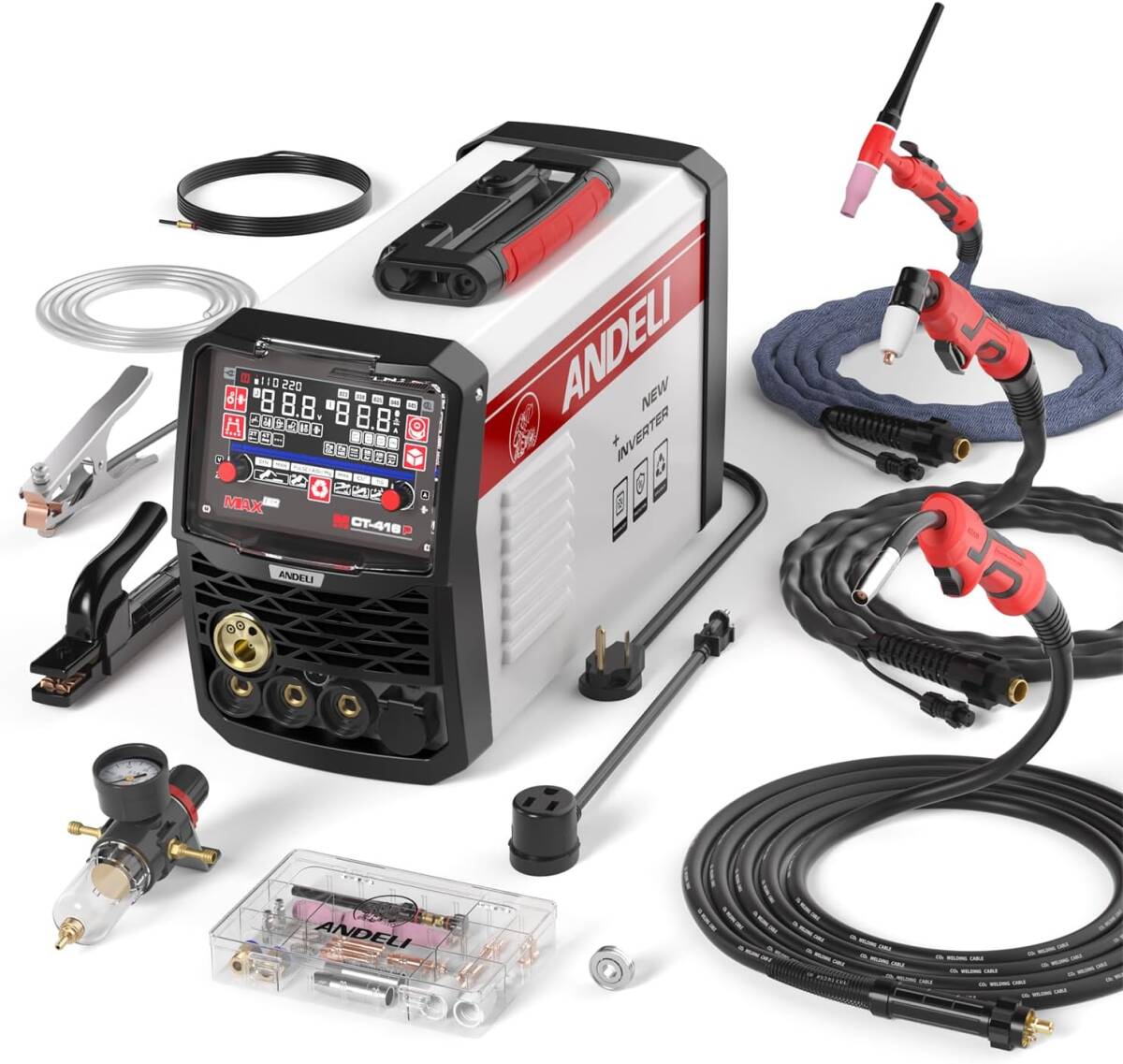 ANDELI 半自動溶接機 アルミ溶接可能 100V/200V兼用 160AMP MIG/手棒溶接/HF TIG溶接/プラズマ切断 ガス&ノンガス半自動溶接 5 in 1多機能MIG溶接機 LEDスクリーン 工業用 家庭用 MCT-416P