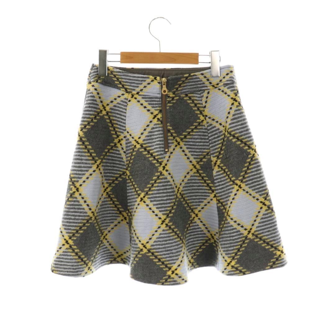 ブルーレーベルクレストブリッジ BLUE LABEL CRESTBRIDGE チェック ウール フレアスカート 38 グレー マルチカラー /CX ■OS ■GY46 レディース