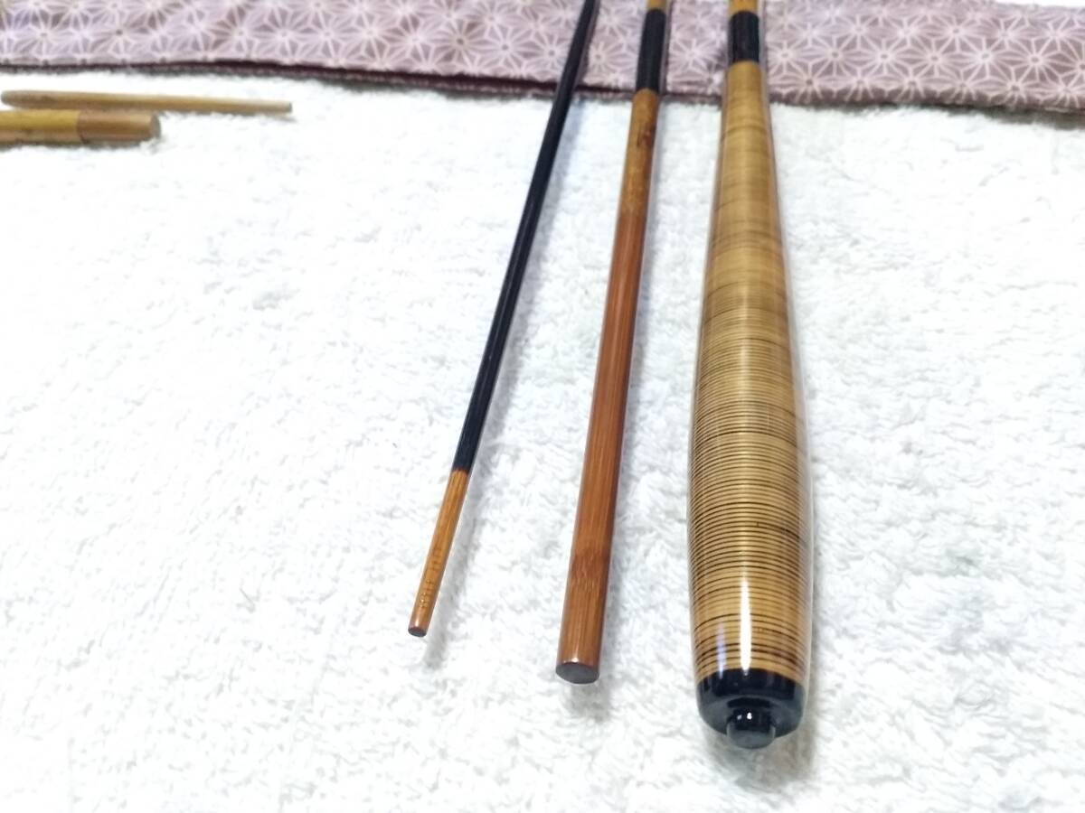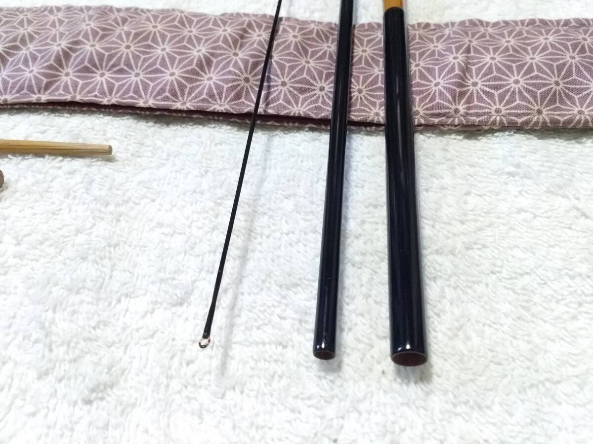 付属品は画像の通り、オリジナルの口栓、竿袋(オリジナルではありません)になります。商品の状態ですが、口割れ、欠け、深い傷など無く綺麗です。保管時の薄い傷があるかも知れませんが、艶もありとても良い状態だと思います。私感的には非常に綺麗な状態だと思います。竿袋を別に保管していた為、紛失してしまいました。見つかりましたらお付けします。オークション終了後48時間以内にご連絡の方のみご入札下さい。落札後取り引きナビにてご連絡させて頂きます。ご入札後のキャンセル、返品。クレーム等受付られません。送料はヤマト運輸の元払いで、九州から関東まで1600円です。宜しくお願いします。元竿9.8ミリ 穂先4.3ミリ