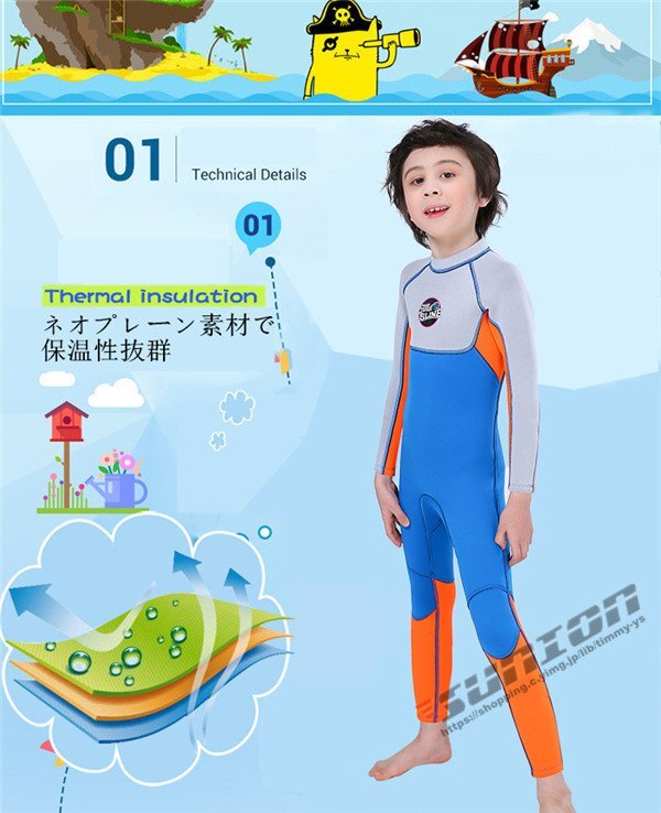 ウェットスーツ 子供用 2.5mm サーフィン フルスーツ バックジップ ネオプレーン ダイビング マリンスポーツ