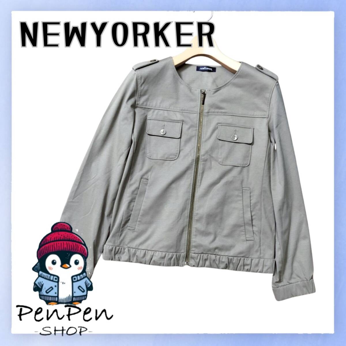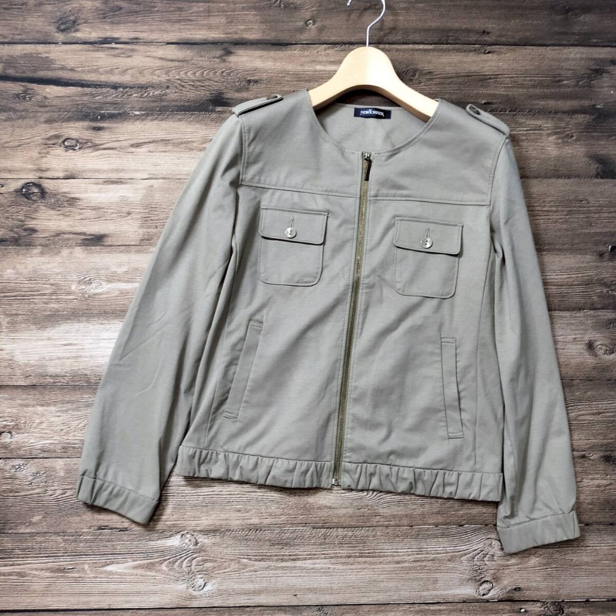 NEWYORKER ニューヨーカー レディース ジップアップ ジャケット 綿ポリエステル混 カーキ 11AR Lサイズ相当 上品デザイン 春秋 ミリタリー