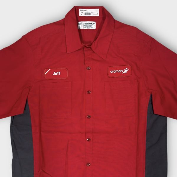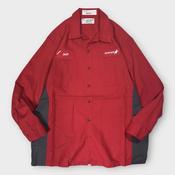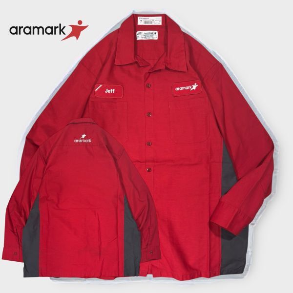 ★美品★両面aramarkロゴワッペン★aramark 長袖ワークシャツ sizeL 切替し USA古着 クリーニング プレス済み 2503