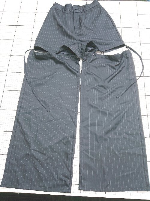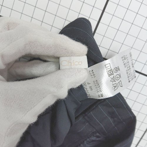 ◇ Θ フーズフーチコ シンプル系 サイドベルト付スラックス サイズF ネイビー系 レディース E