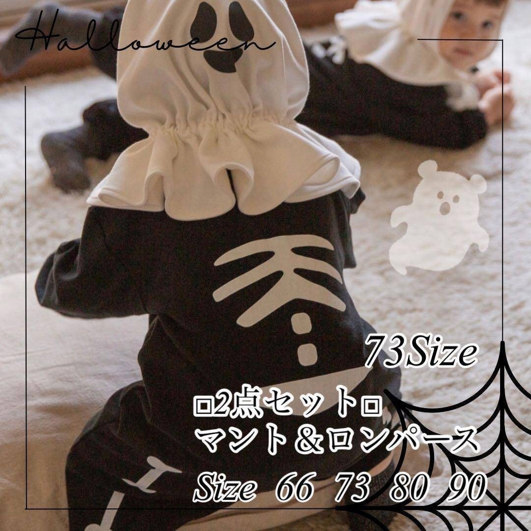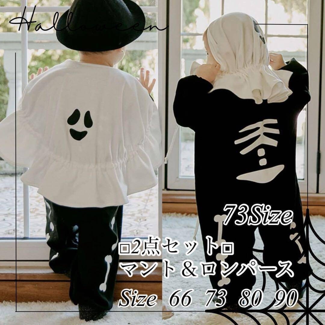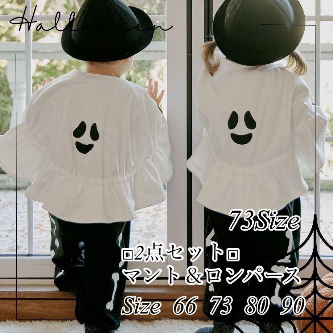 おばけプリントがかわいい仮装マントとロンパースのセットアップ