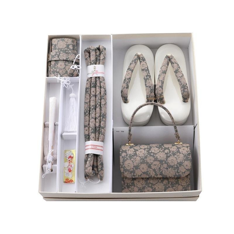 セット内容:結び帯、バッグ、草履、箱セコ、帯締め(丸グケ)、扇子、おびらかんざし 七五三以外にも、お正月やお雛祭り等にもお使いいただけます