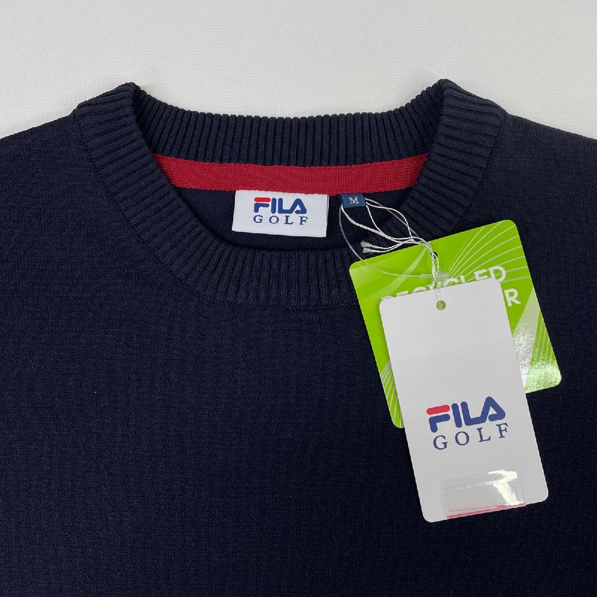 coco 未使用品 フィラゴルフ FILA メンズ セーター M 紺×白 クルーネック ロゴ刺しゅう 2023年モデル レターパックプラス発送可 104357