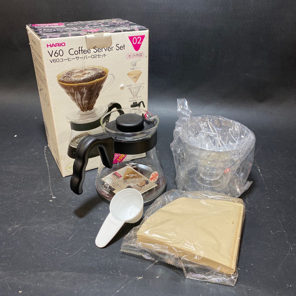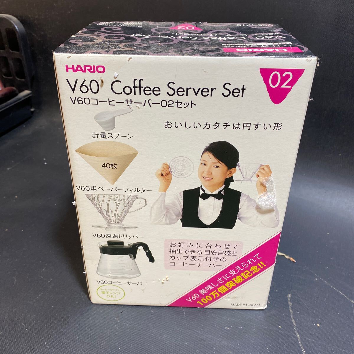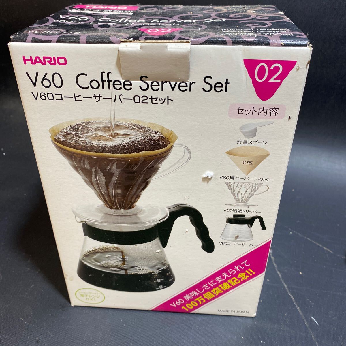 N 5287 新品未使用 [ ハリオ HARIO V60コーヒーサーバー02セット ] 付属品揃い 箱入り 計量スプーン ドリッパー ペーパーフィルター