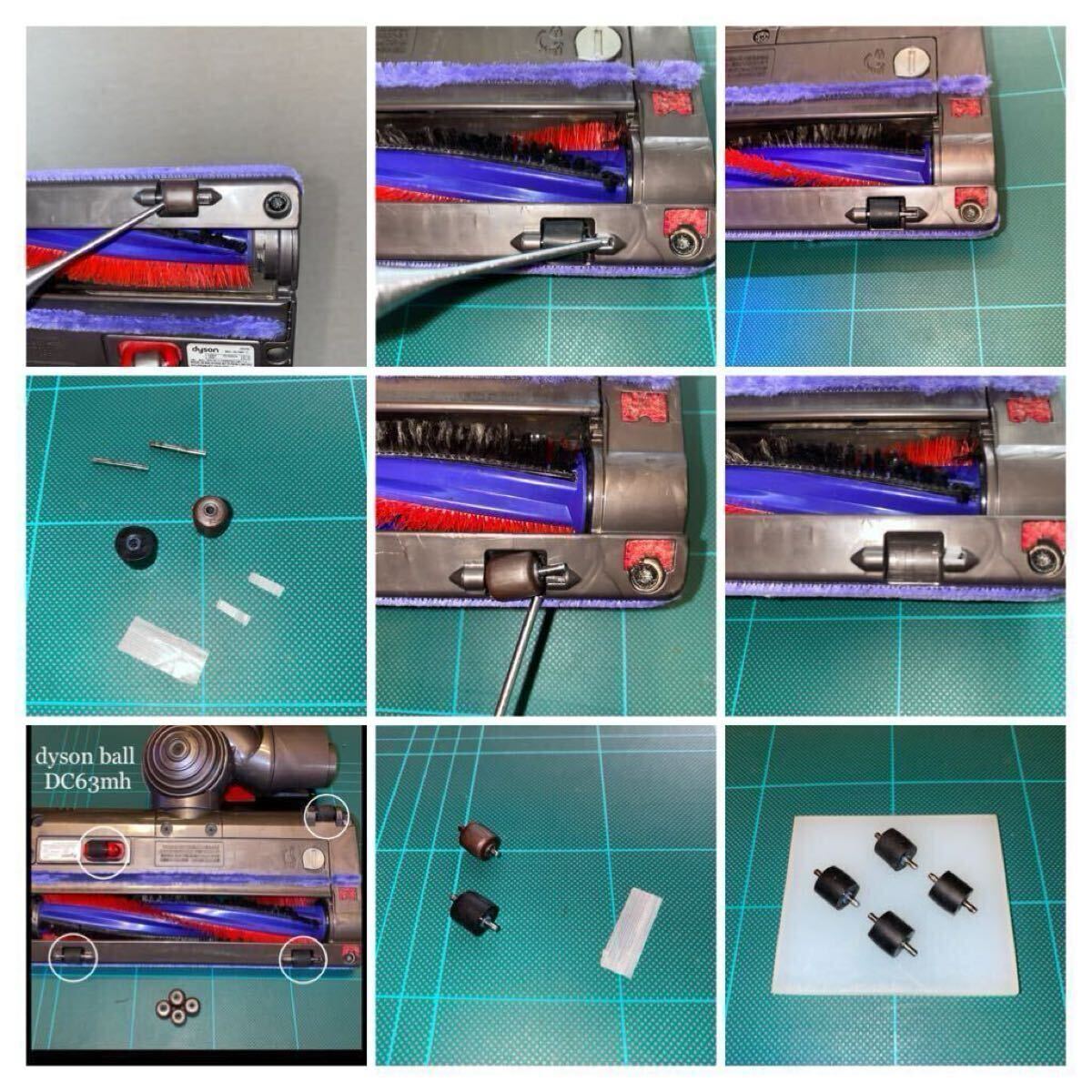 ダイソン掃除機消耗パーツ工房製作車輪4点セットでございます。純正車輪の消耗により吸引力によるヘッド床面張り付き動作不具合、床面キズでお困りの方におすすめ致します。当商品はシャフトは付属しませんので既存シャフトをご利用願います。