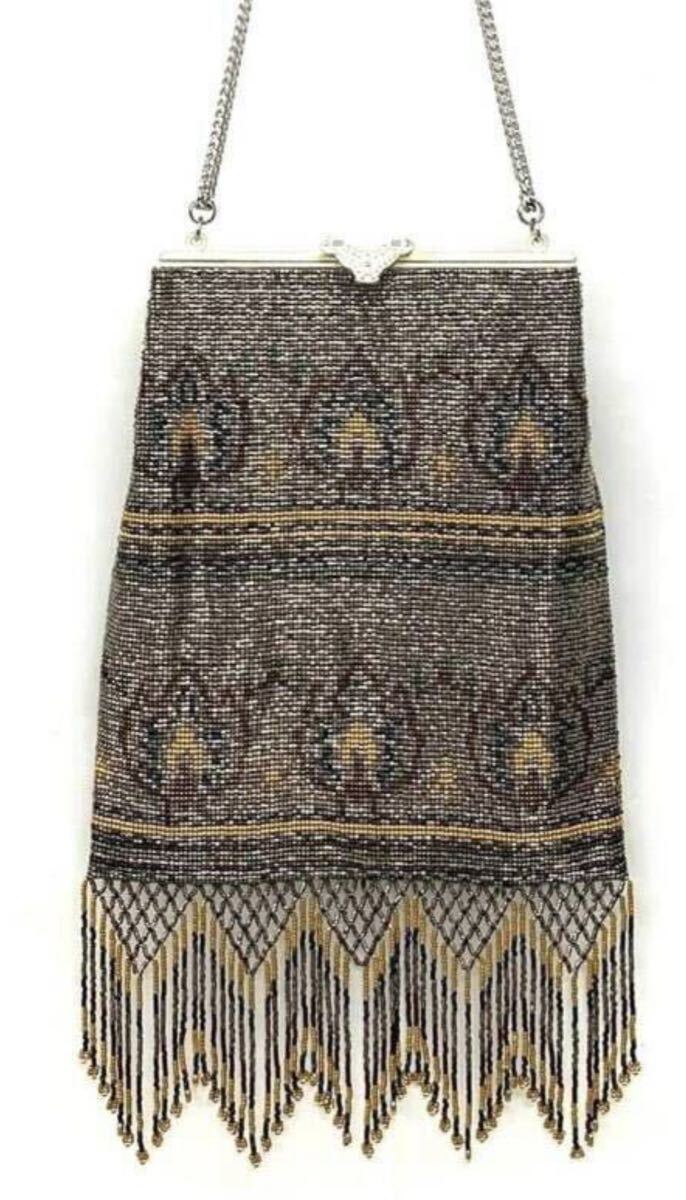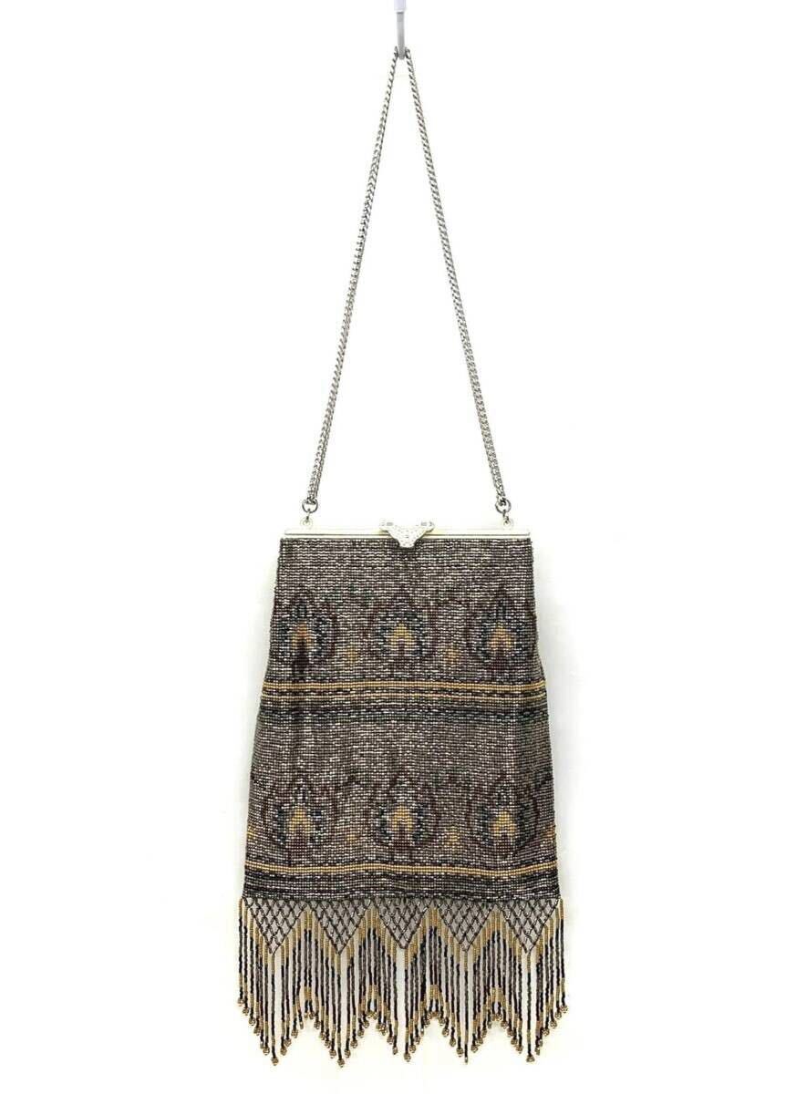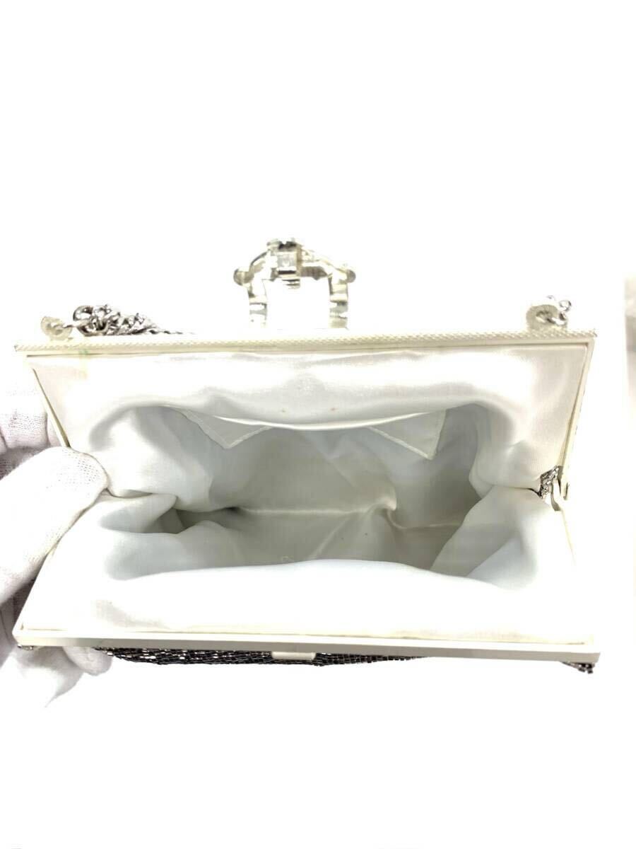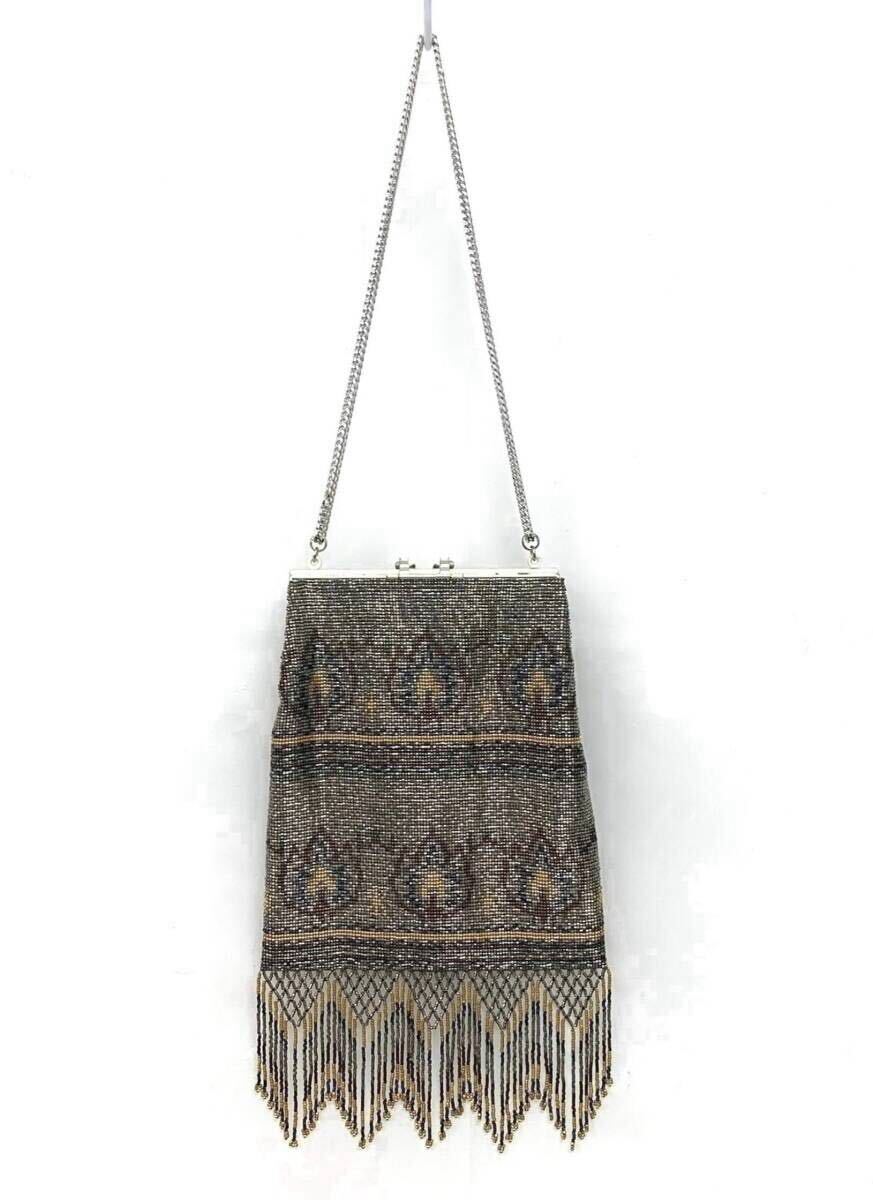 T08/197 サコタカコ メタルビーズバッグ フリンジ ポーチ パーティーバッグ シルバー ビーズバッグ がま口 レトロ