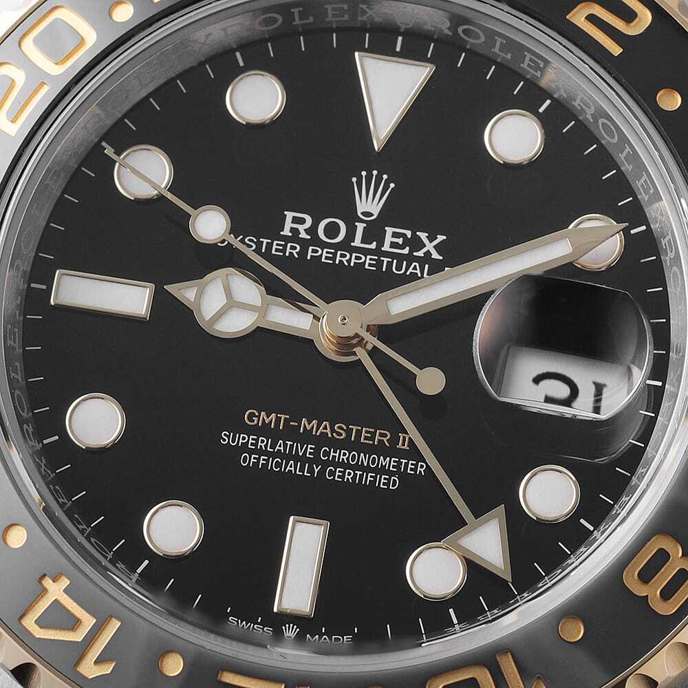 モデル情報 | 2023年発表のGMTマスターです。ベゼルカラーはブラック×グレーの2トーン。グレーの部分はデイタイムを示しており、ブラックの部分はナイトタイムを示しております。ステンレスとイエローゴールドのコンビに、ラグジュアリーな印象のジュビリーブレスを採用。完全自社製ムーブメントキャリバー「3285」搭載。パワーリザーブ70時間。100m防水。 |